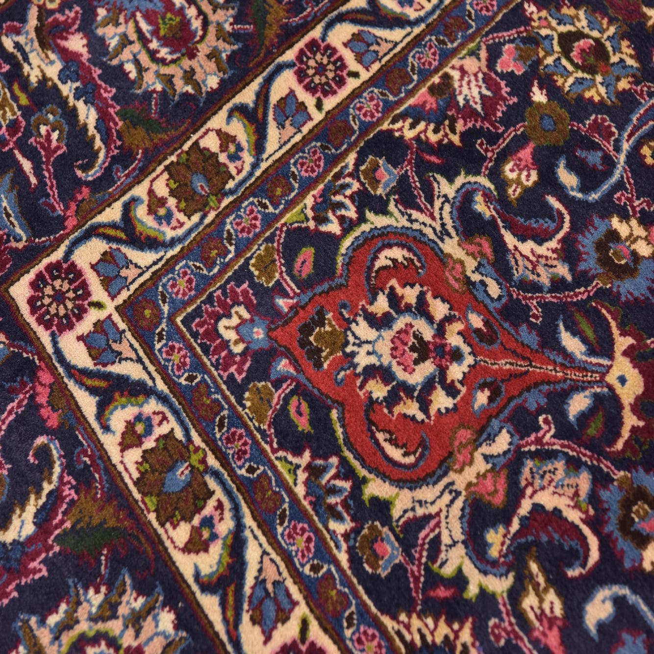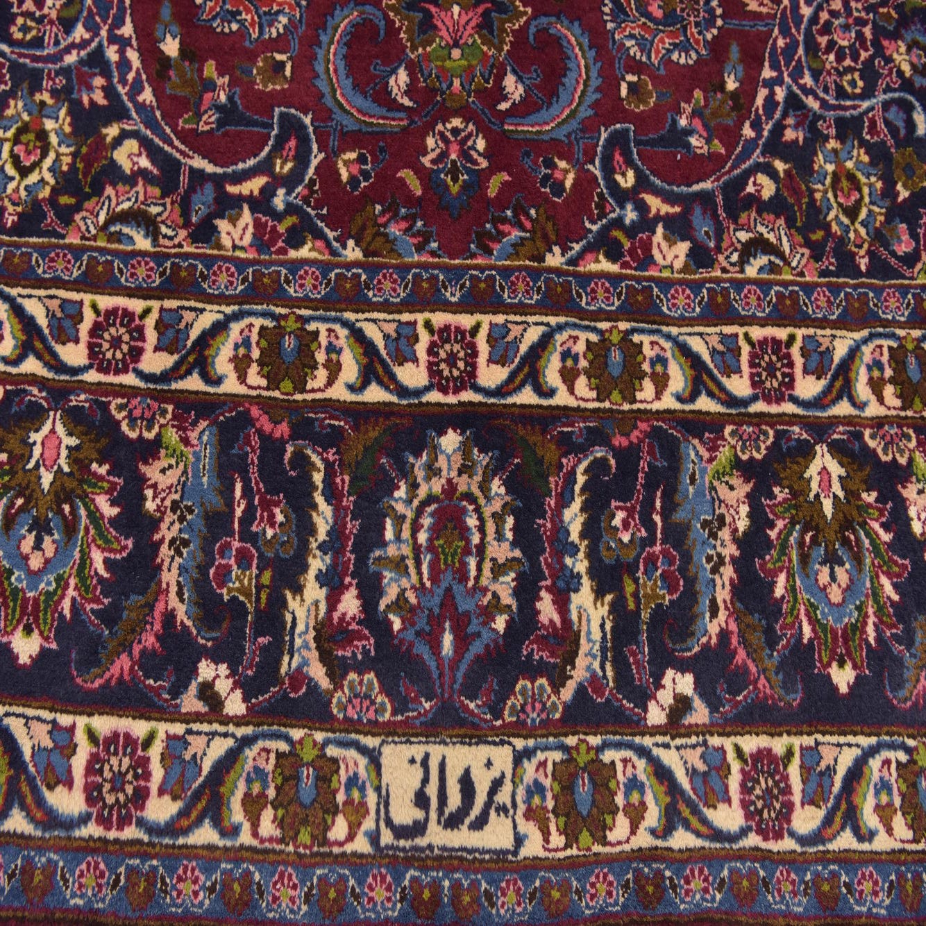The texture is indicative of the high-quality wool fibers and expert hand-knotting techniques used, ensuring a plush feel underfoot. Adding to its distinctiveness is the signature of a master weaver, a testament to its authenticity and heritage. It is considered semi-antique, spanning 40-60 years, which suggests both durability and timeless appeal.