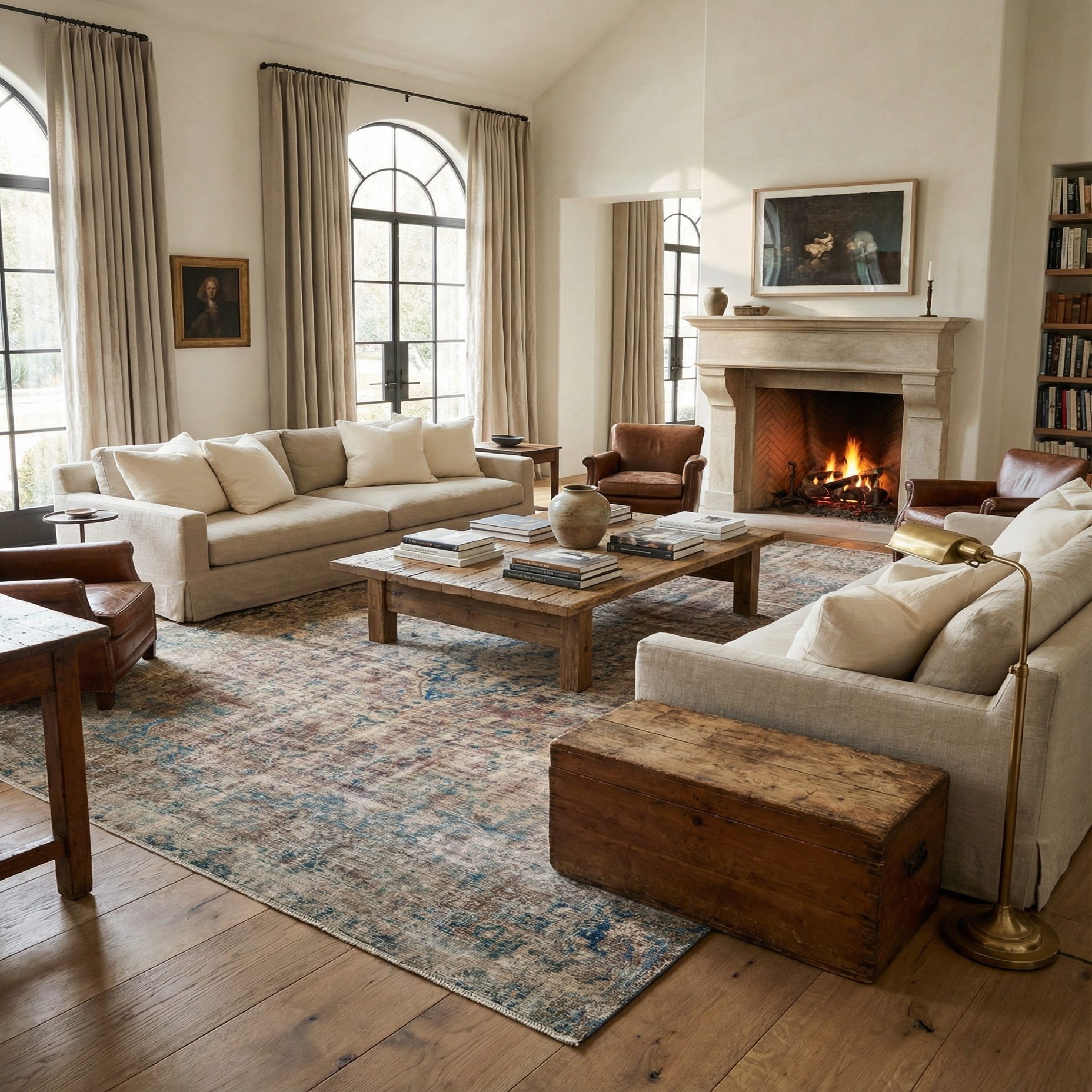 Use this rug to anchor a seating group in a traditional or transitional living room, ground a dining table in a warm, classic dining space, or add depth to a study or library with leather and dark wood furnishings. It also pairs well with neutral linen sofas, navy accents and aged brass or wood finishes when you want color without overpowering the room. The burgundy ground brings warmth to lighter interiors and complements richer, darker palettes equally well.