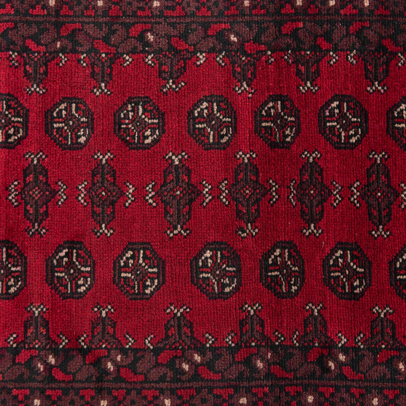 Primary color is Burgundy. Colors in this rug include: Burgundy, Beige, Black, Maroon.