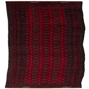 This Afghan Akhche collection rug is a hand-knotted 16 Ft Runner crafted of 100% wool, which provides a natural texture and ensures lasting durability. The rug features a rich burgundy background, imparting a warm and sophisticated ambiance. Its pattern boasts intricate geometric motifs in a repeating array of burgundy, beige, black, and maroon, delivering a traditional aesthetic that complements a diverse range of interiors.