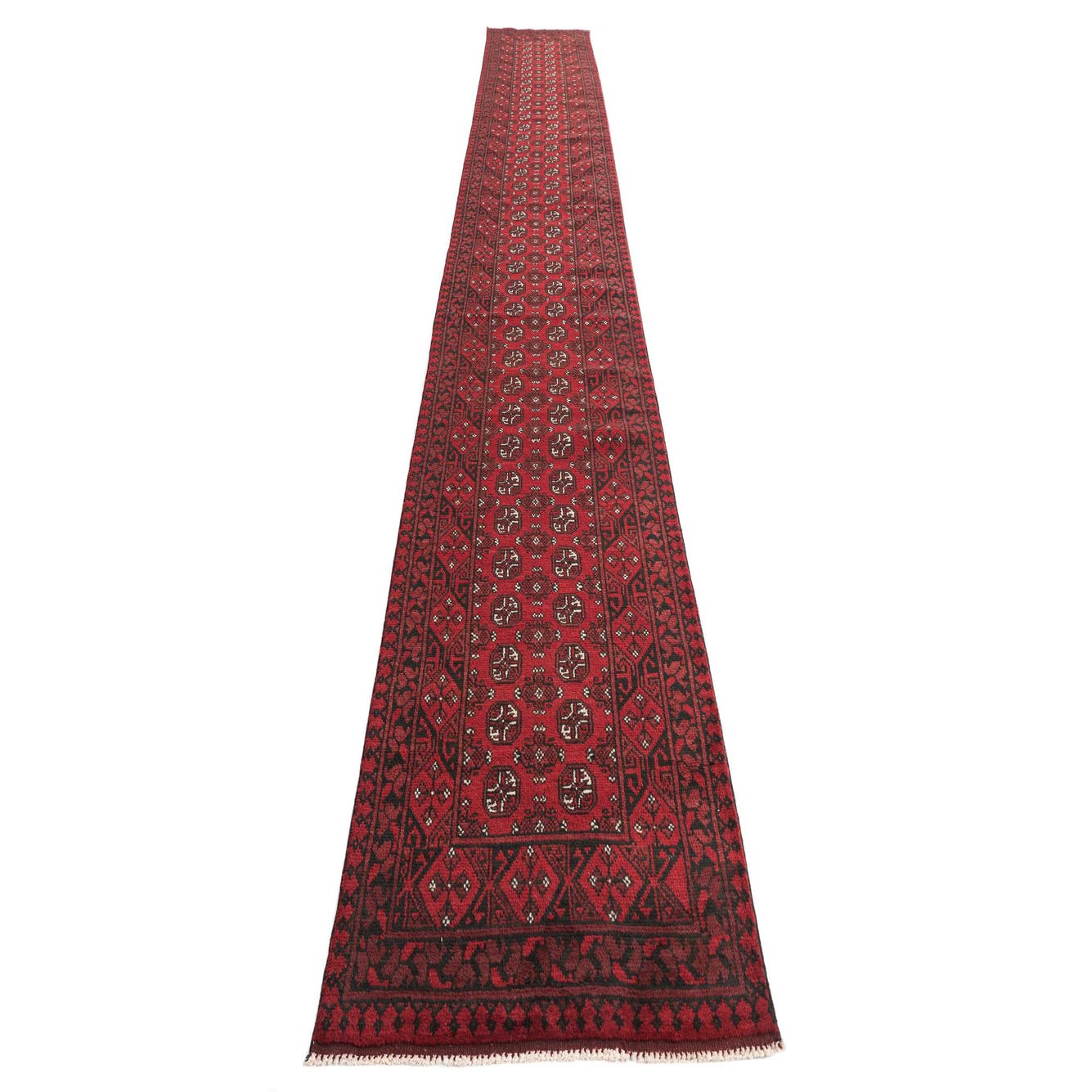 Detail image of  2' 7 x 19'  Hand Knotted Afghan Akhche Wool Runner Rug