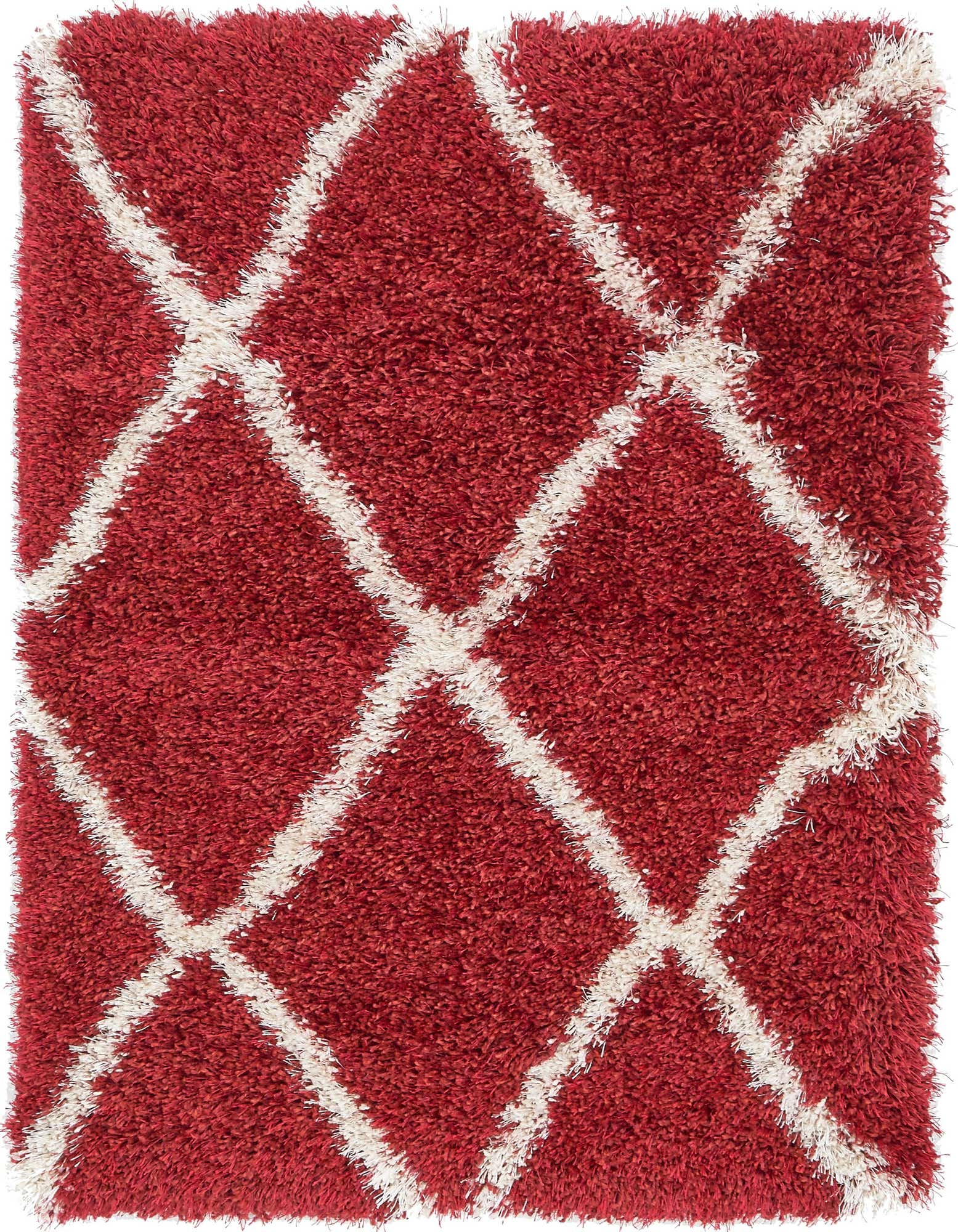 Primary color is Burgundy. Colors in this rug include: Burgundy, Beige.