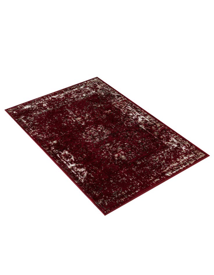 A 2x3 rectangular Monte Carlo rug in deep red with a distressed bohemian pattern, featuring cream and subtle green accents.