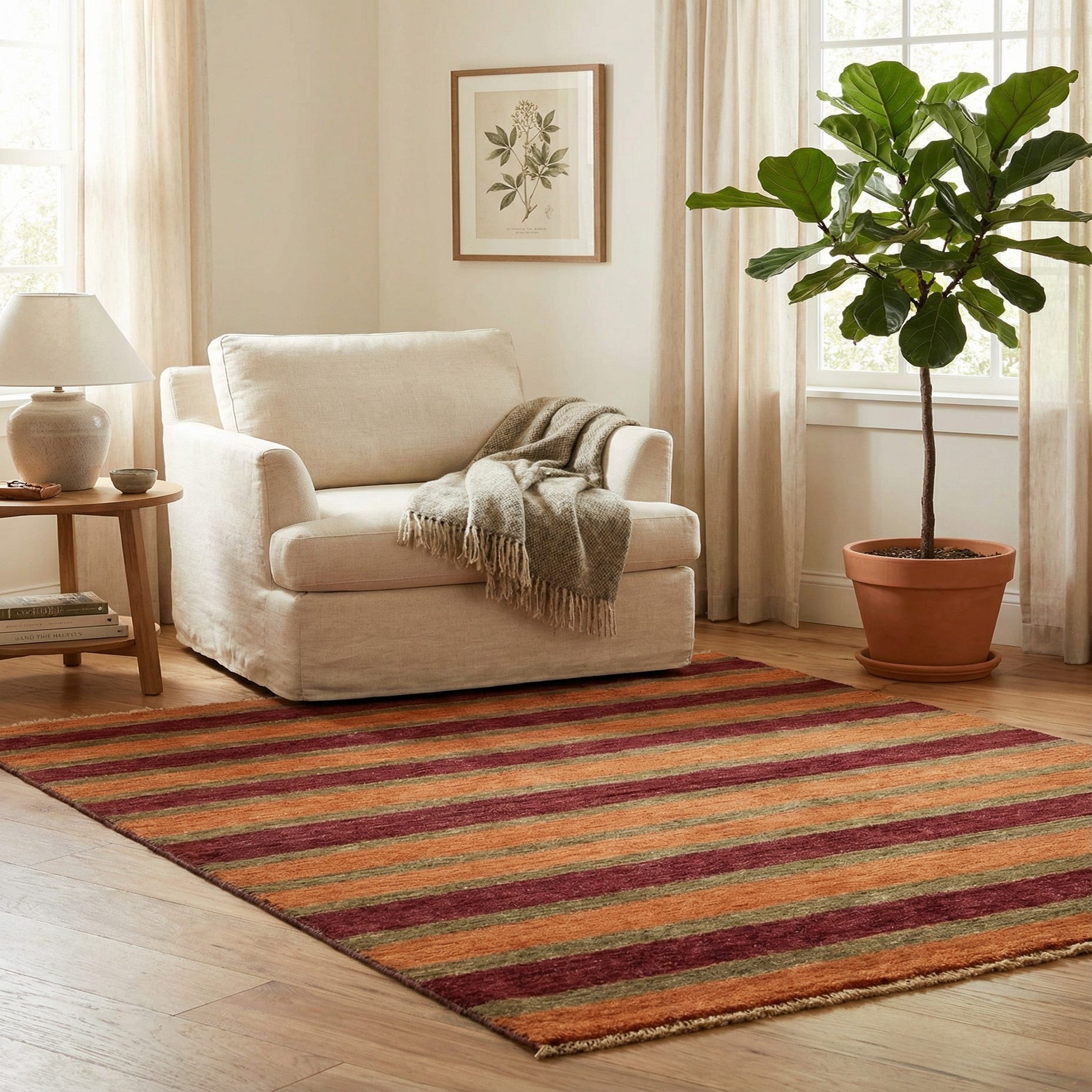 Primary color is Burgundy. Colors in this rug include: Burgundy, Cream, Gray, Orange.