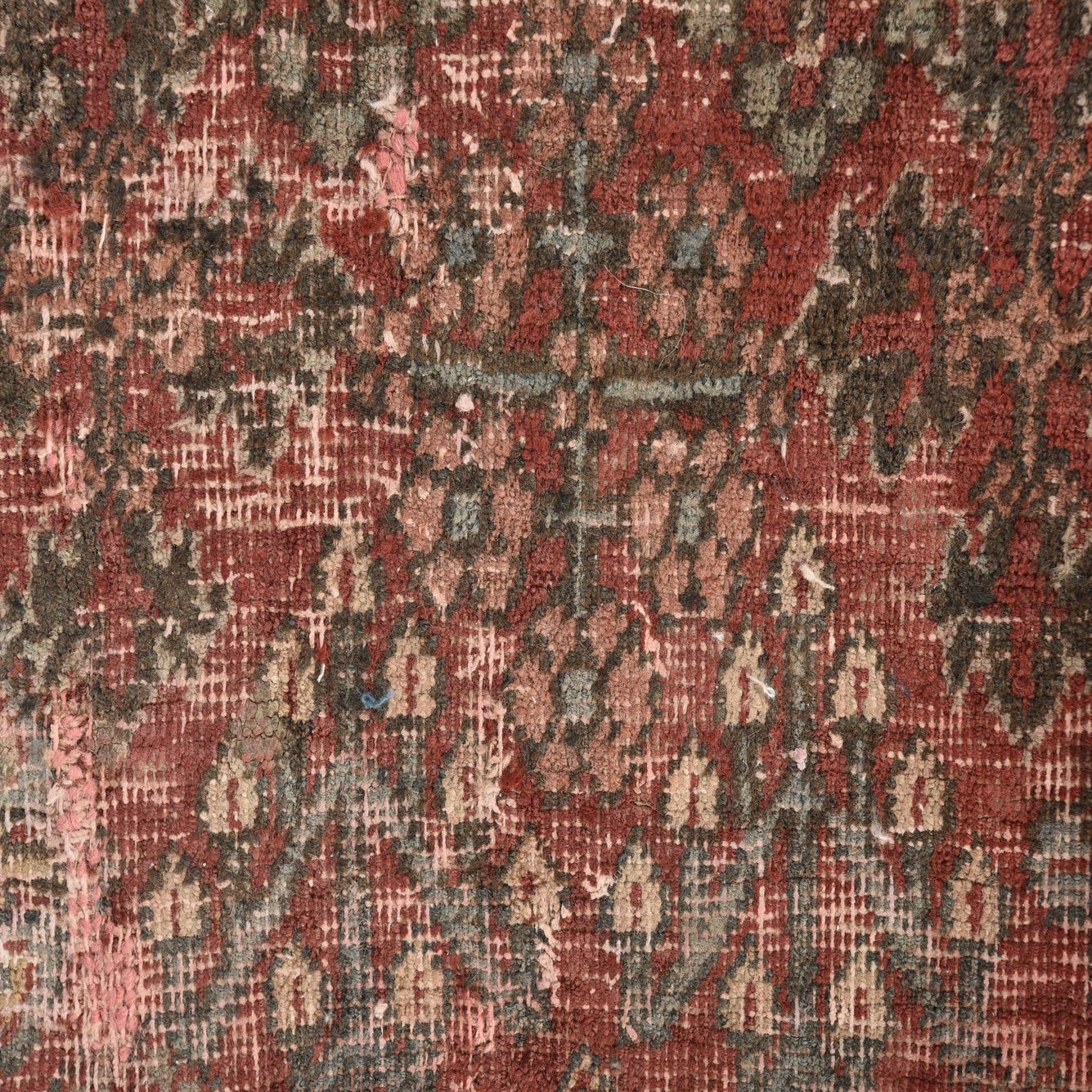 This piece works well in a compact living area or reading nook to anchor seating and add color without overwhelming the room. Pair it with warm wood furniture and cream or tan upholstery for a cohesive, lived-in look, or use it to add contrast under a small dining table or bedside seating. It also complements vintage or transitional interiors—think leather chairs, brass accents, and layered textiles—where its muted, aged palette can tie together both traditional and contemporary elements.