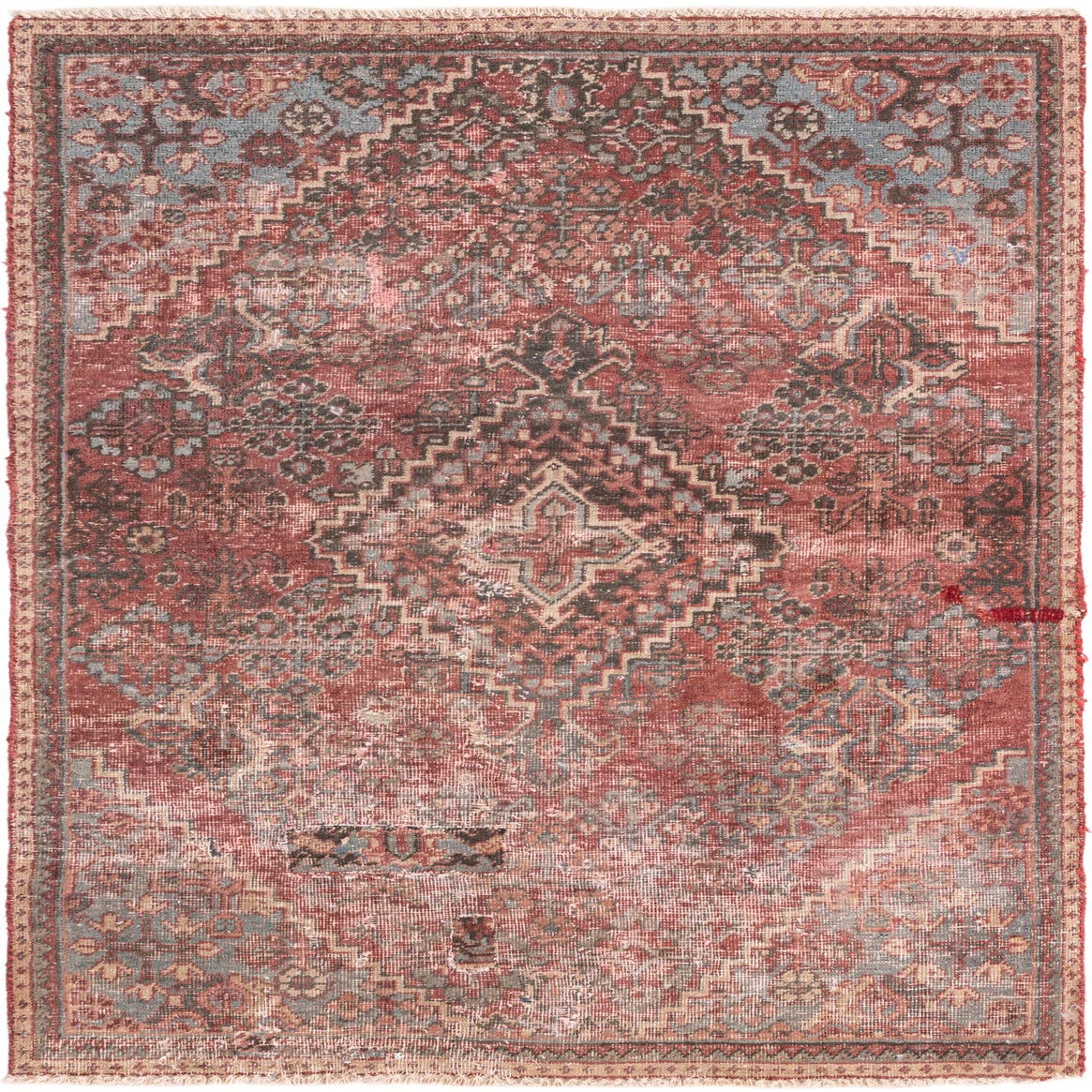 A 3x5 rectangular Ultra Vintage rug in distressed reds, blues, and browns with a central medallion and Persian pattern.