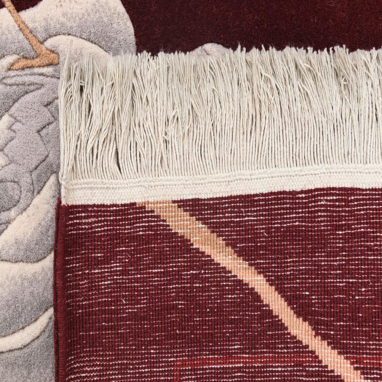 Primary color is Burgundy. Colors in this rug include: Burgundy, Beige, Gray, Light Brown, Orange, Ivory.