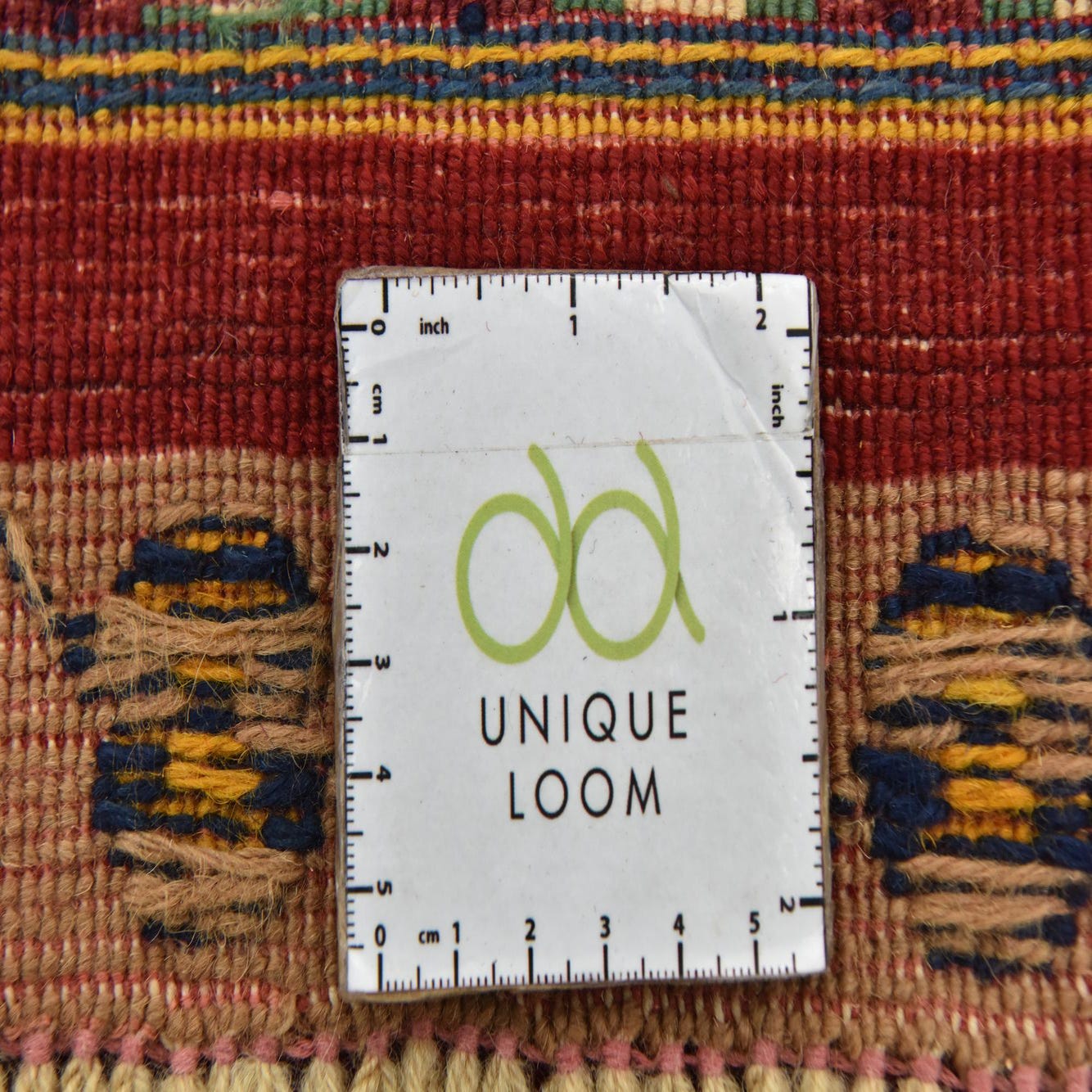 Primary color is Burgundy. Colors in this rug include: Burgundy, Beige, Black, Blue, Brown, Gold, Green, Ivory, Navy Blue.