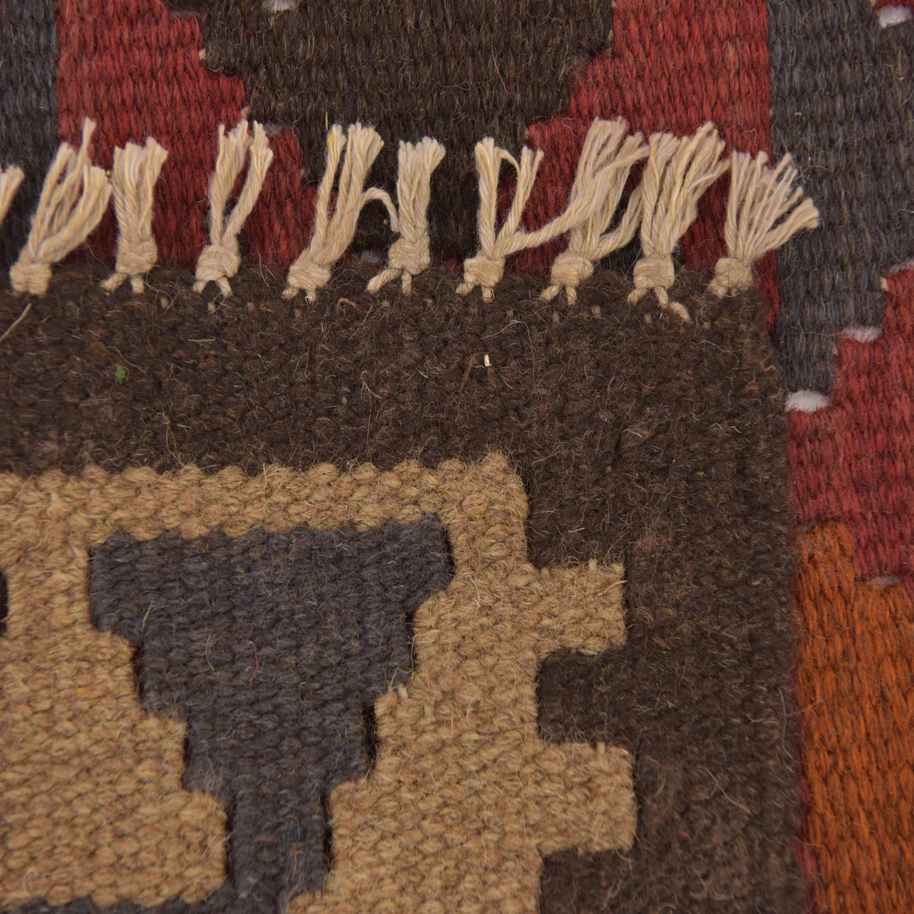 With its bold color palette and geometric motifs, the rug has a versatile appeal that can enhance various interior design themes. It could serve as a focal point in a minimalist setting, adding warmth and complexity, or blend harmoniously within a bohemian or eclectic style space, where its earthy tones and patterns resonate with a mix of textures and colors. In more traditional environments, the rug’s timeless kilim design can complement decorative elements that celebrate cultural heritage and craftsmanship.
