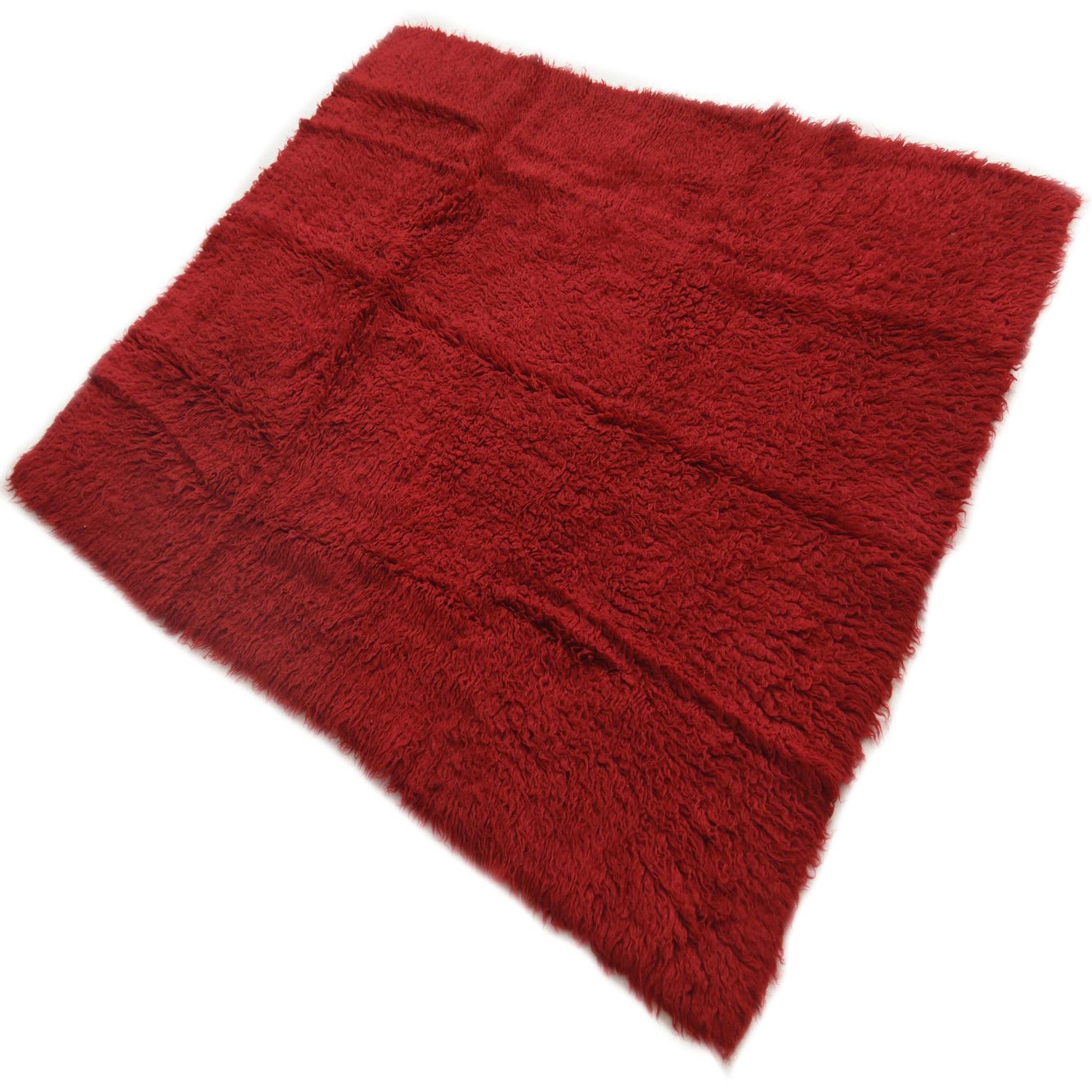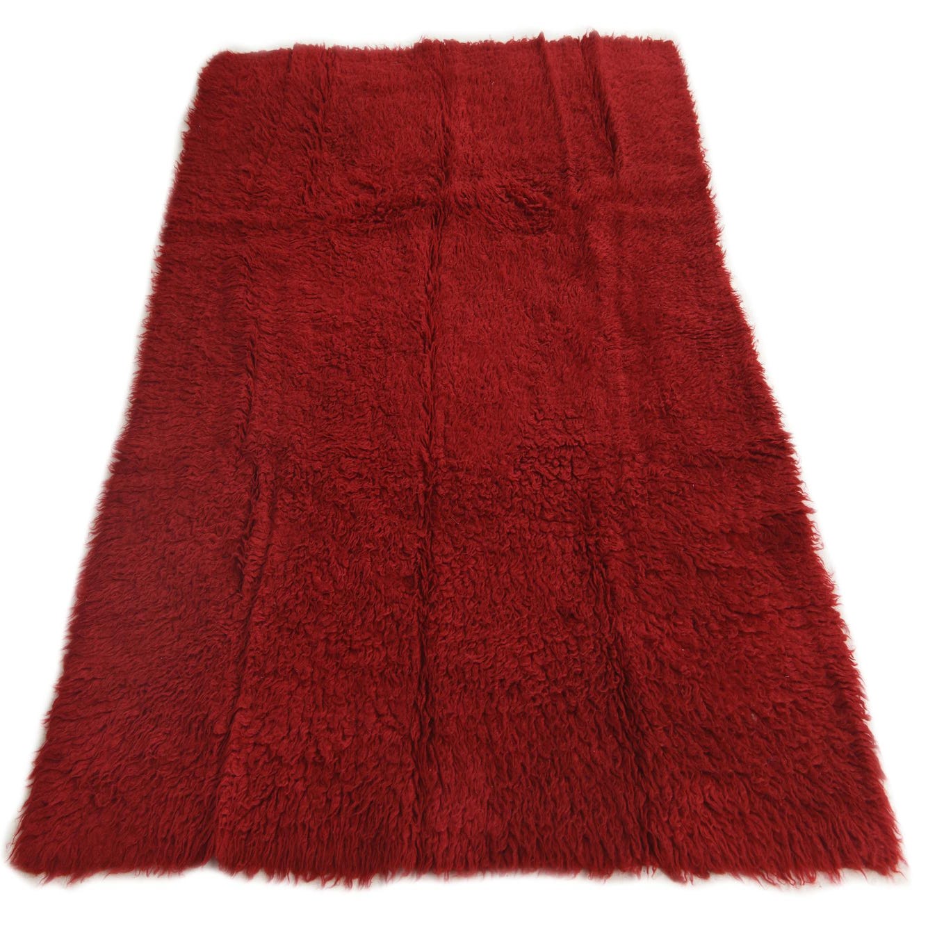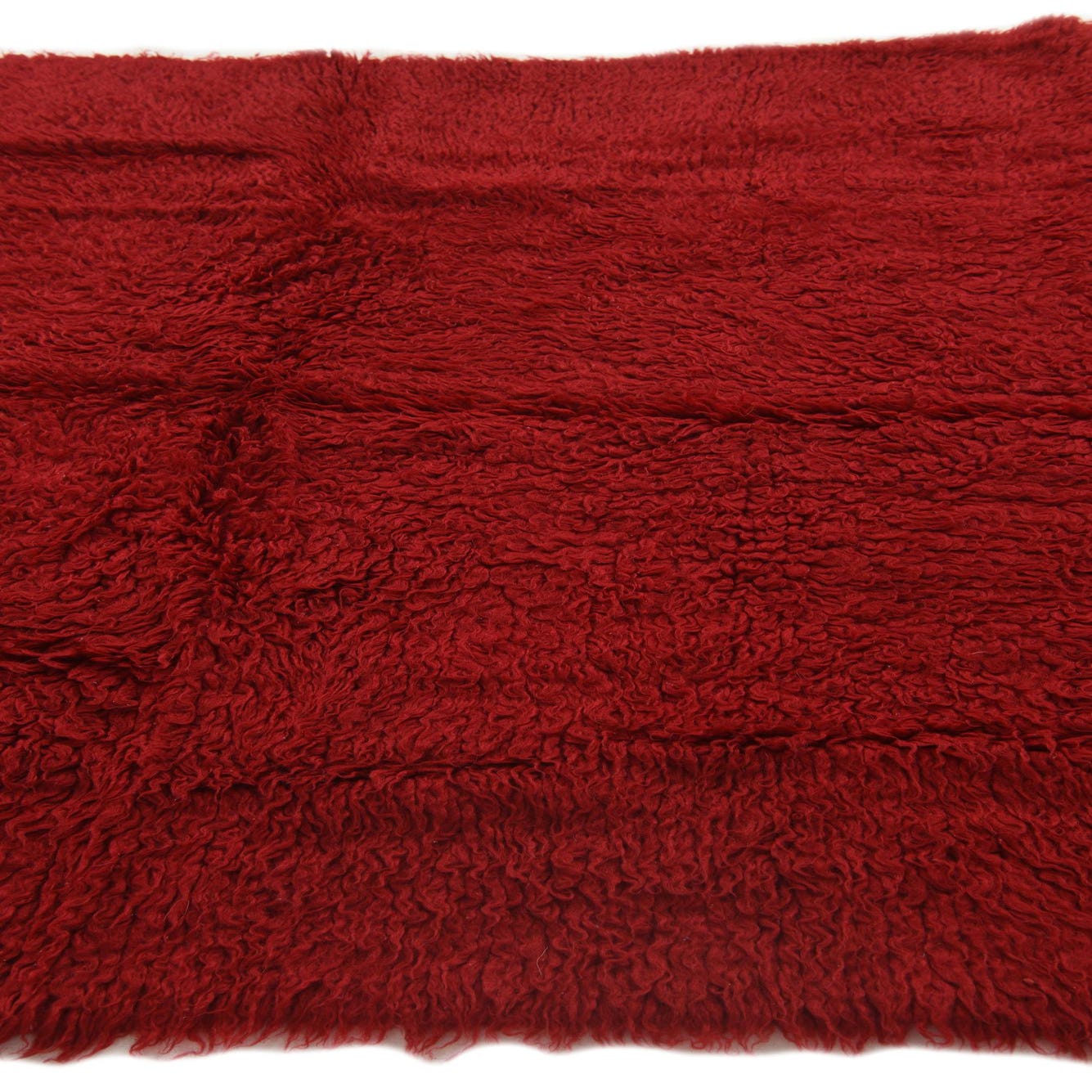 A plush, rectangular 4x6 red shag rug made of 100% wool, perfect for a cozy living room or bedroom.