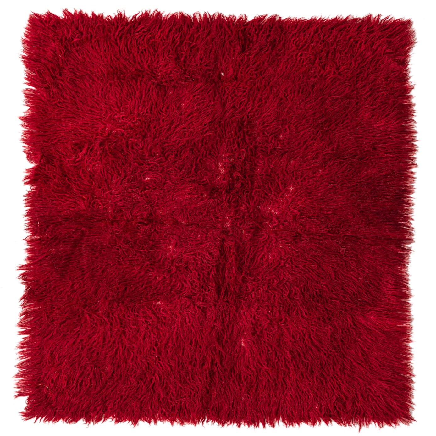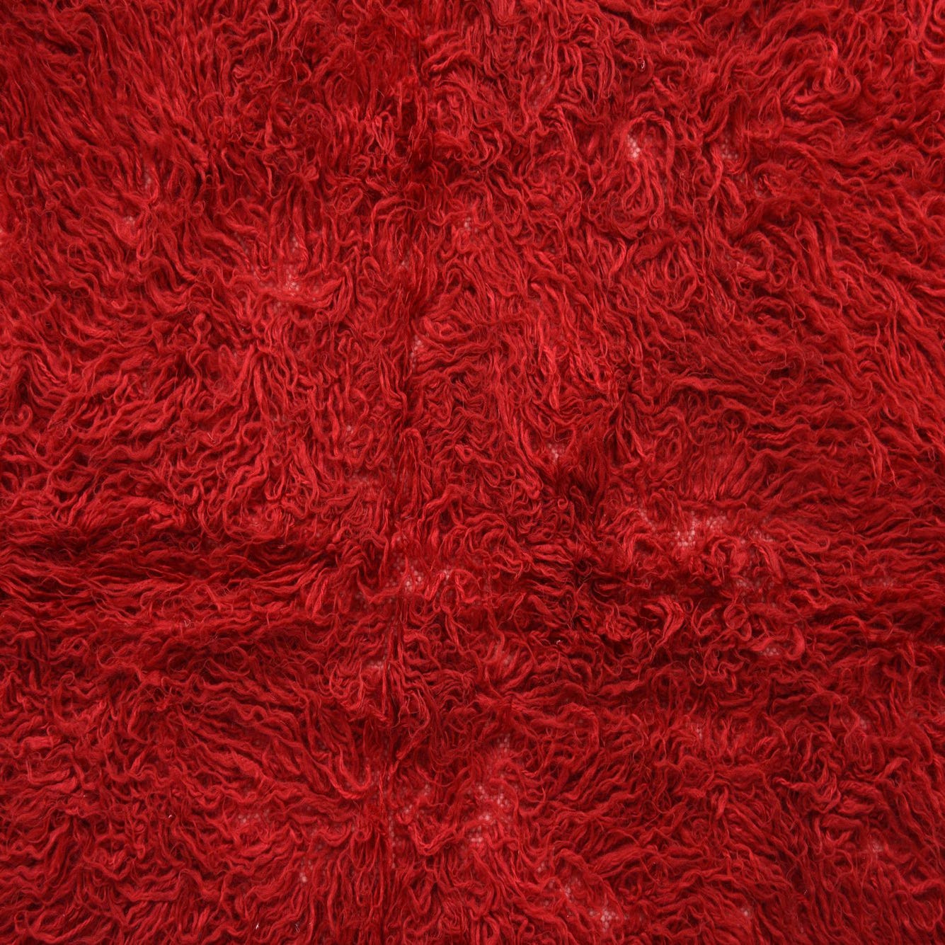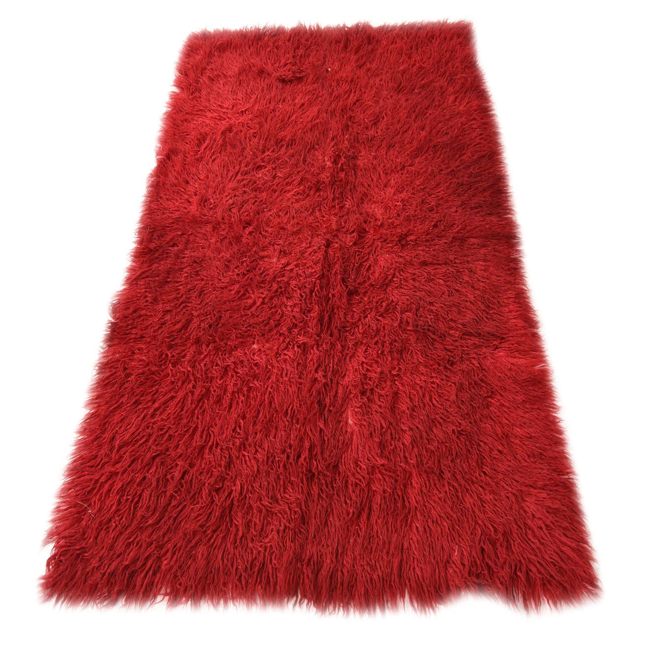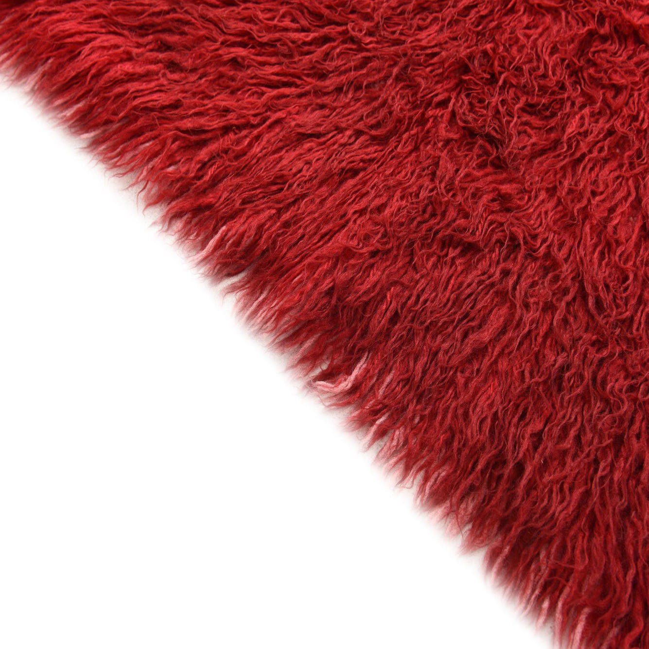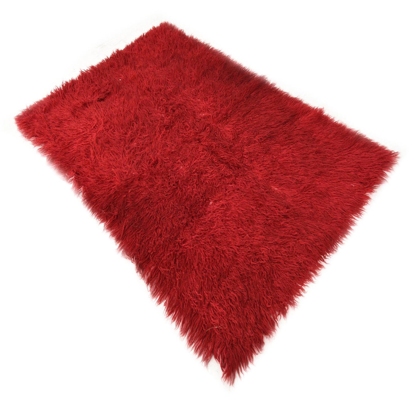 A vibrant 4x6 rectangular red shag rug with a thick, plush pile, perfect for a cozy living room.