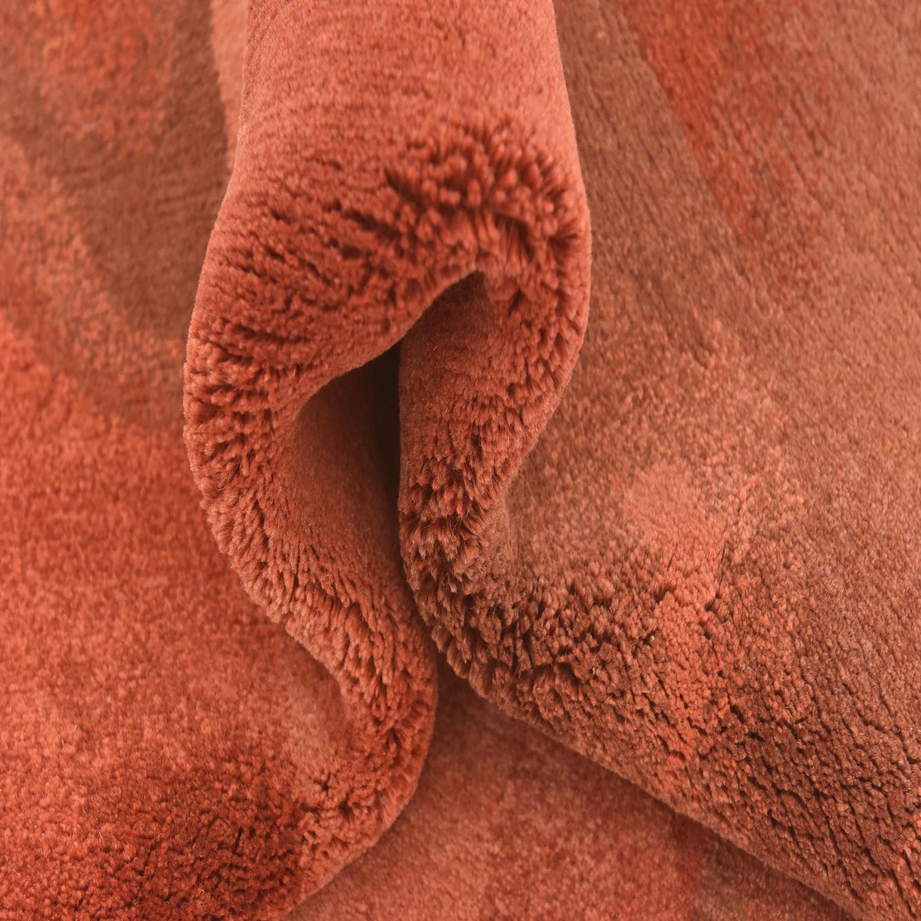 The Nepal collection presents a hand-knotted 4x6 wool rug that features a harmonious blend of warm tones. The rich burgundy background sets a welcoming and sophisticated tone, which is complemented by organic shapes and abstract patterns in hues of brown and red. The 100% wool construction ensures a plush texture, elevating the comfort and luxury of any space.