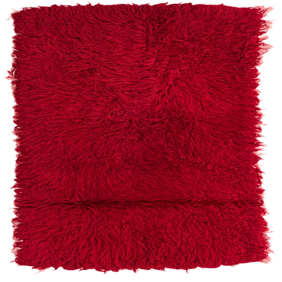 A vibrant red 5 ft runner rug with a plush shag pile, showcasing its handmade texture.