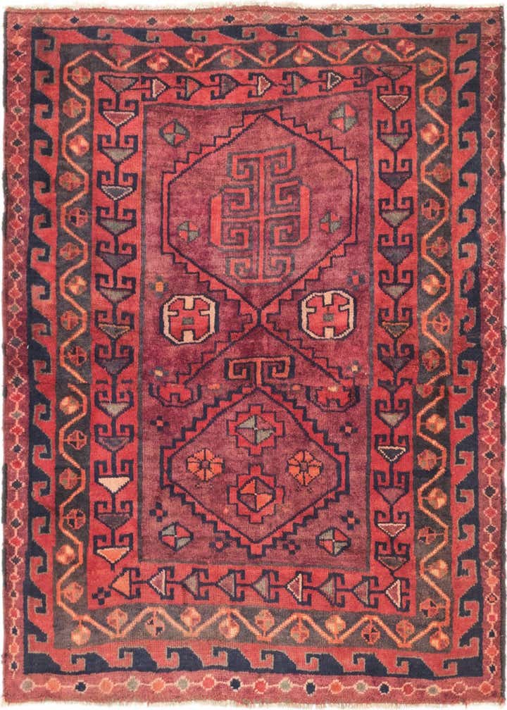 Primary color is Burgundy. Colors in this rug include: Burgundy, Beige, Gray, Ivory, Navy Blue, Orange.