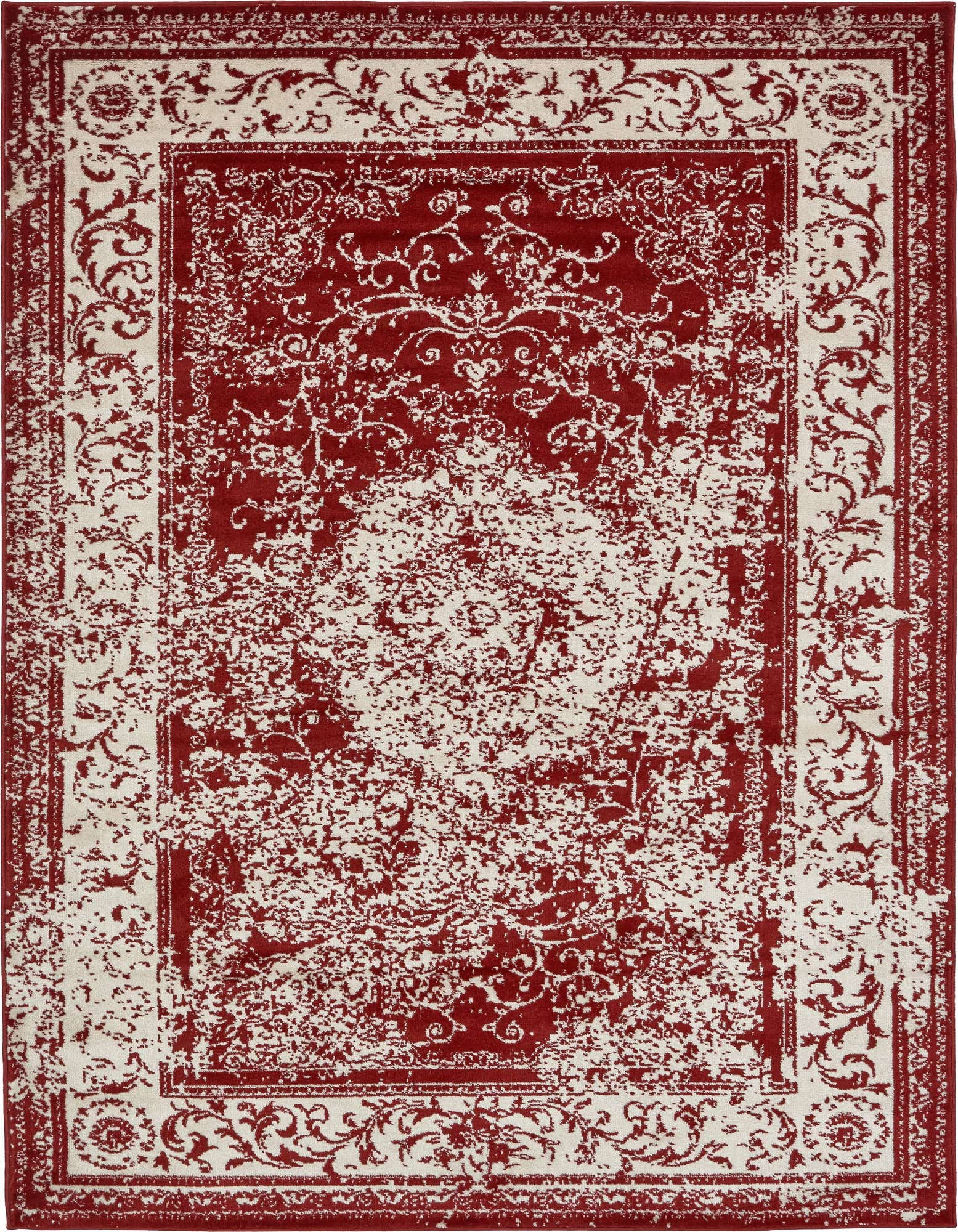 Primary color is Burgundy. Colors in this rug include: Burgundy, Ivory.