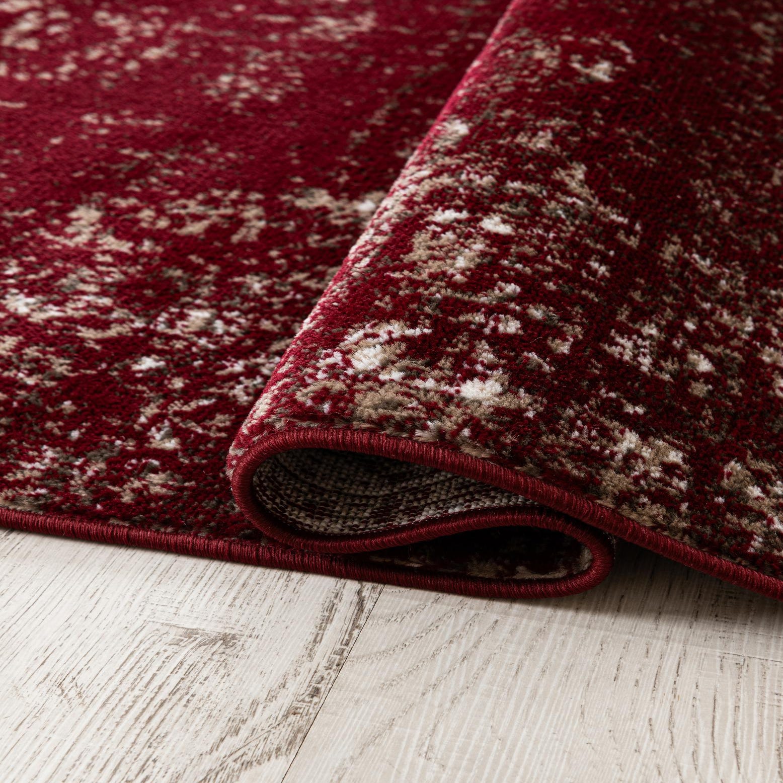 Primary color is Burgundy. Colors in this rug include: Burgundy, Gray, Ivory.