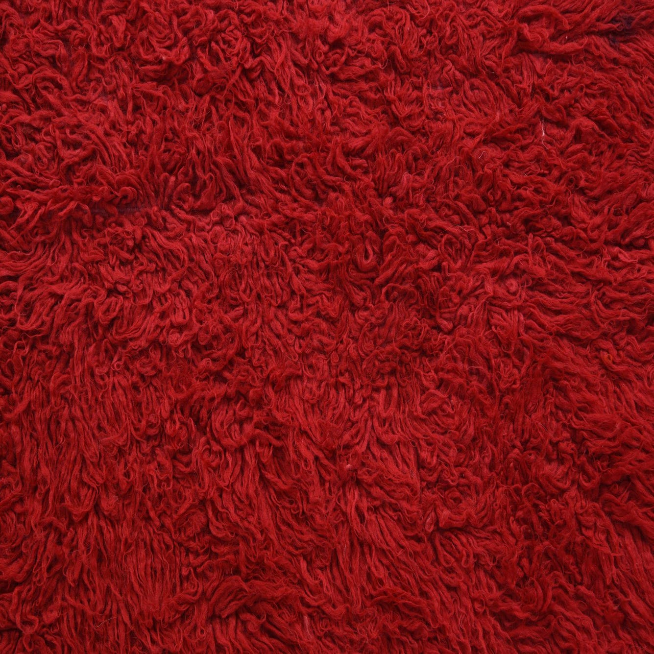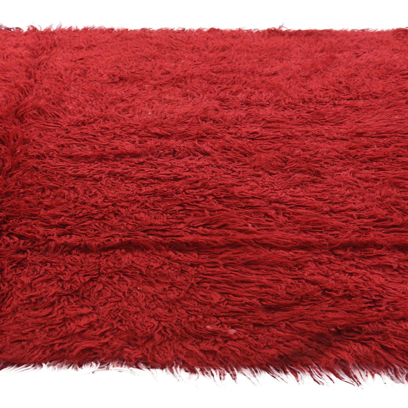A vibrant 5x8 rectangular red shag rug with a thick, plush pile, ideal for a cozy living room.