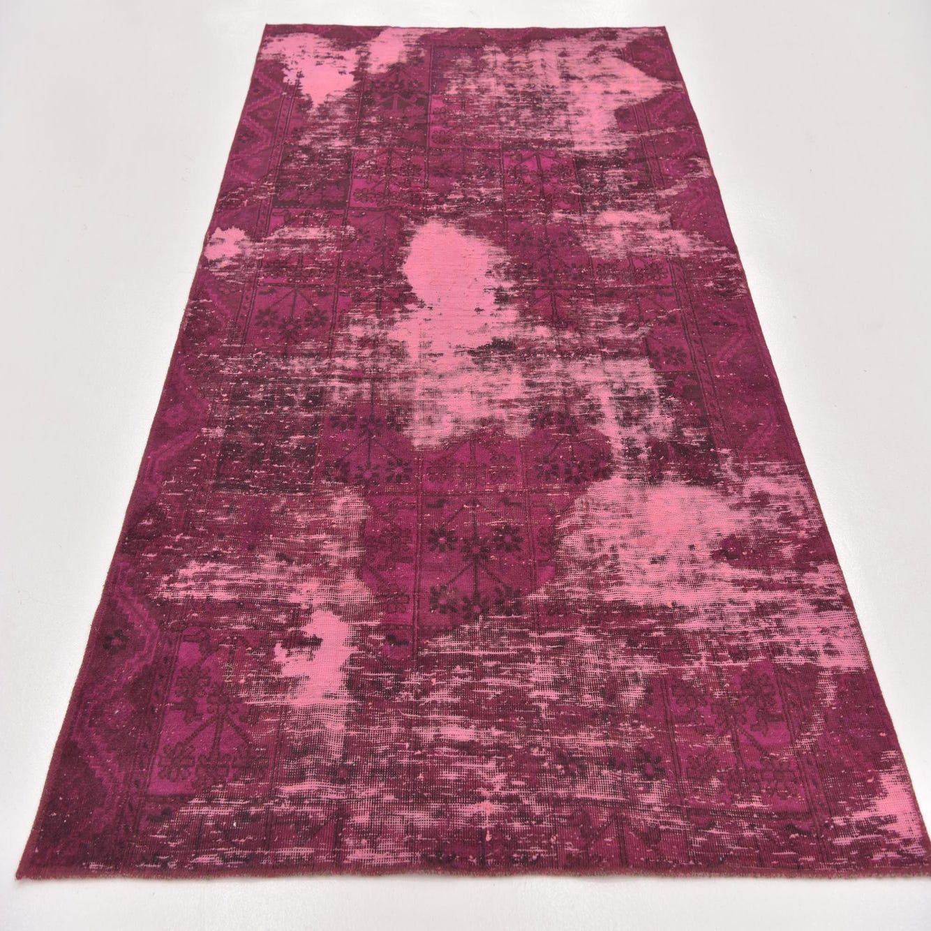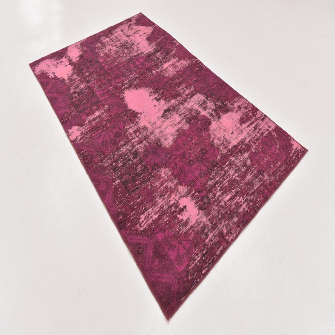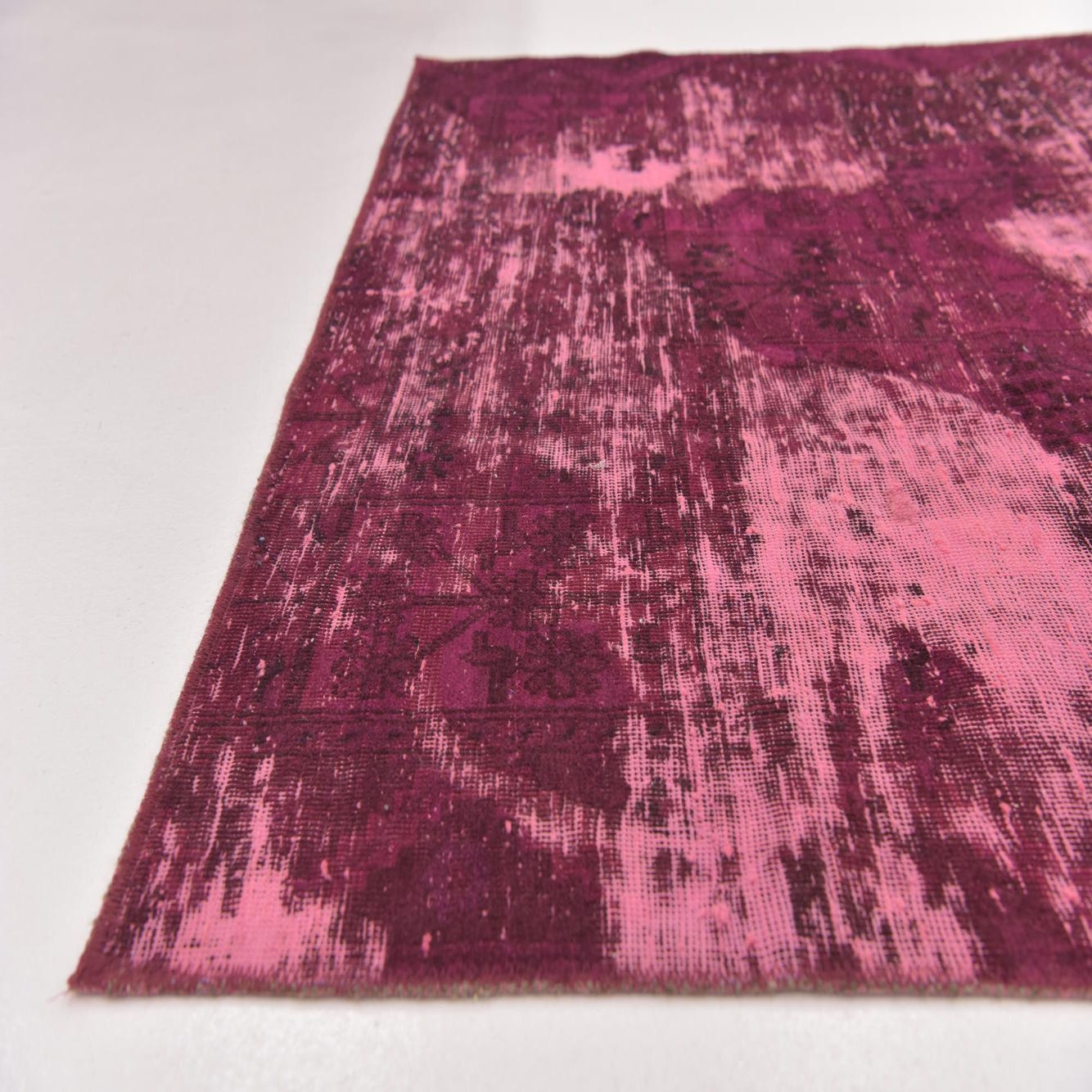 This Persian Ultra Vintage rug is an antique Persian Rug that has been washed, over-dyed, and then shaved down to a low pile. Look at the detail pictures to fully appreciate the uniqueness of this piece.