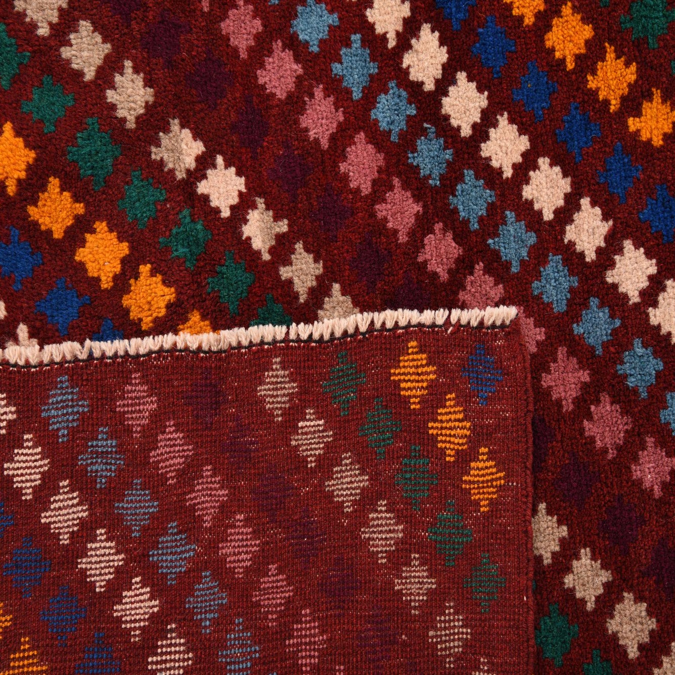 With its rich color palette and intricate pattern, this Balouch rug can serve as a focal point in a variety of interior settings. It is well-suited for traditional and eclectic living spaces, where its artisanal charm and warm tones can complement wooden furniture and add depth to neutral color schemes. In a contemporary setting, this rug can introduce a textured, global-inspired element that contrasts with minimalist decor. Also appropriate for use in offices or reading nooks, it can lend a sense of comfort and sophistication to personal workspaces.