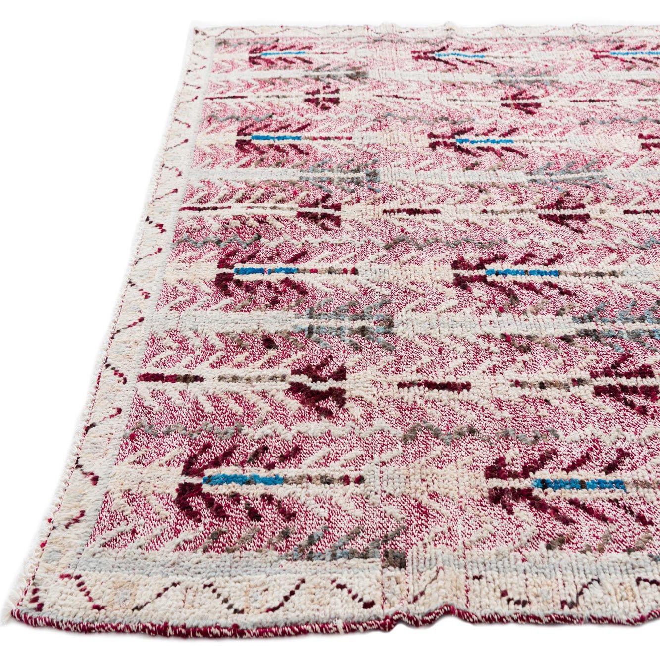 This wool rug could effortlessly integrate into spaces with a modern or transitional decor theme, providing warmth and a touch of sophistication. Its burgundy-dominant palette would harmonize with neutral interiors, adding a pop of color, or it could complement rooms that feature similar hues and materials for a cohesive look. The rug's size and construction make it suitable for medium to large living areas, dining rooms, or even professional settings seeking a mix of comfort with elegance.