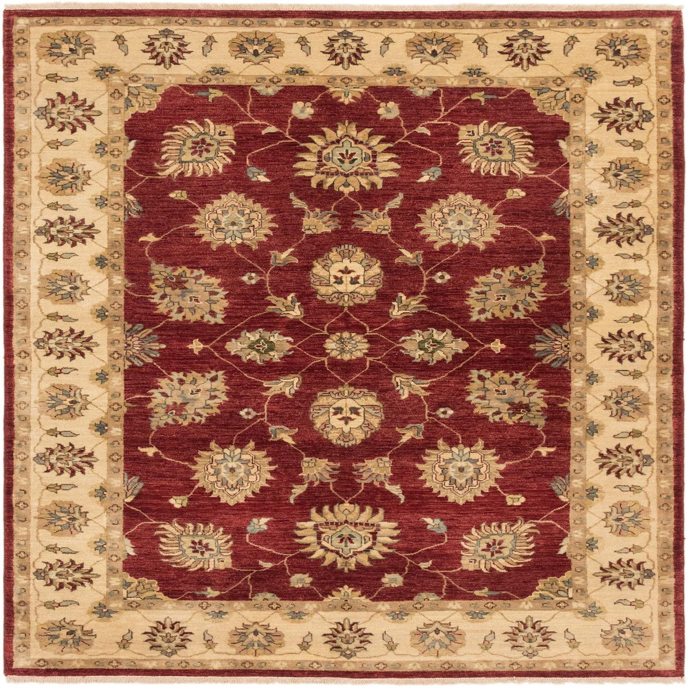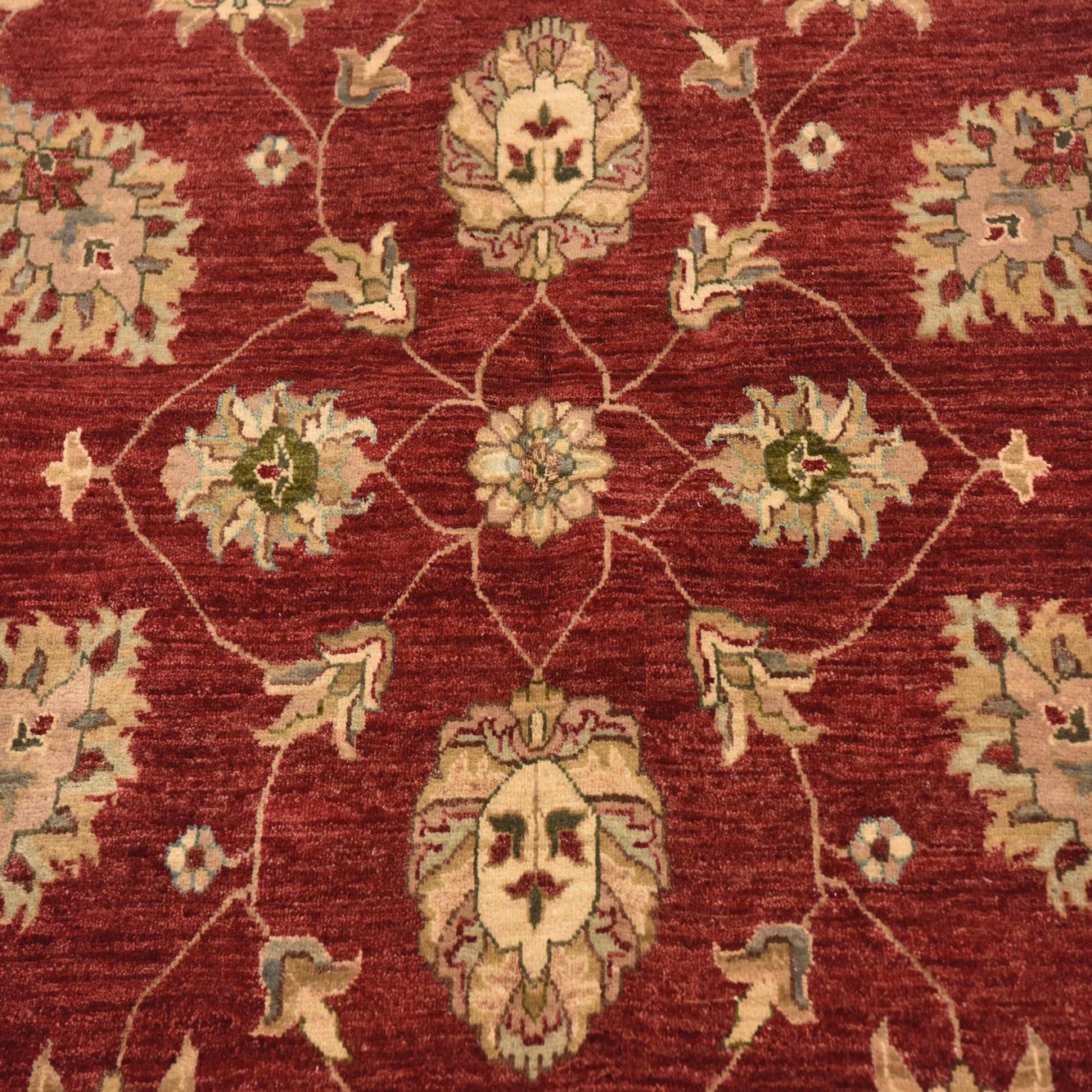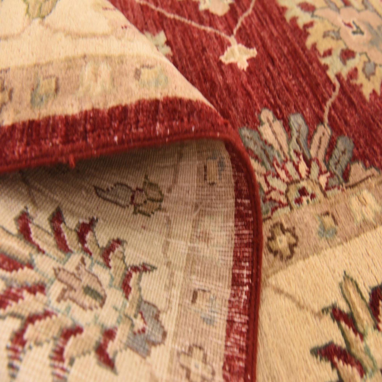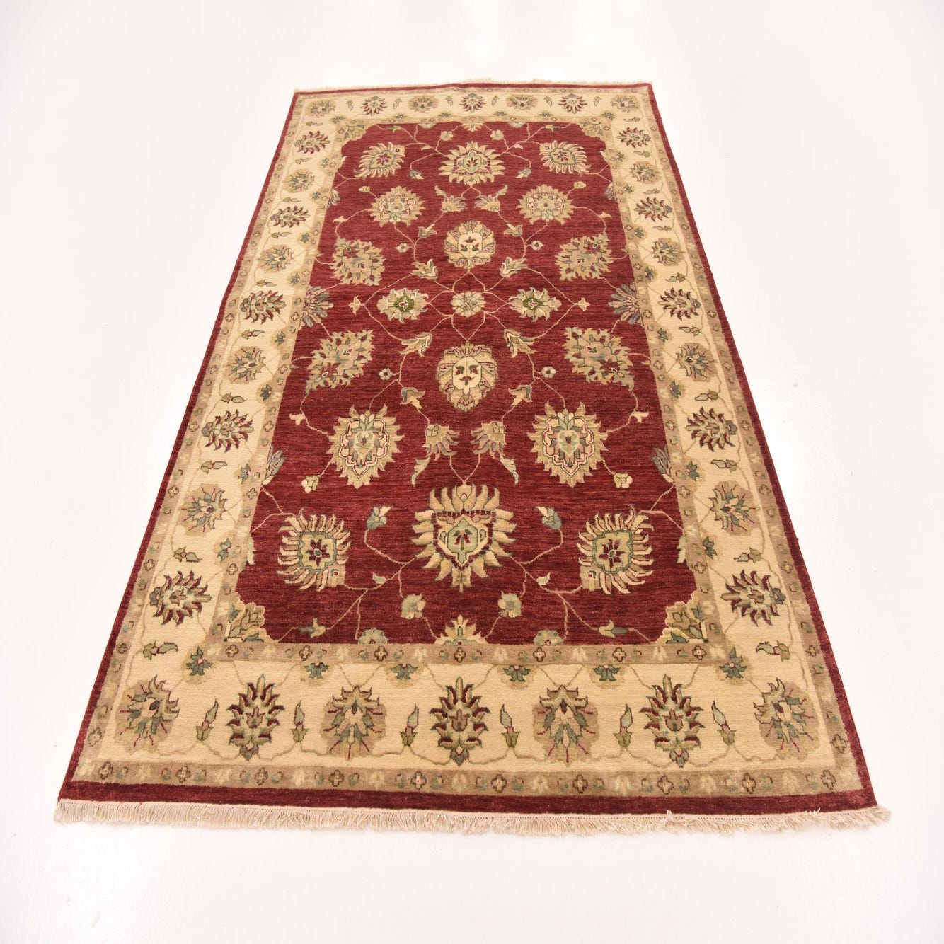 A 6x9 rectangular Rugs.com Peshawar Ziegler rug featuring a deep red field with intricate floral patterns and a wide cream-colored border.