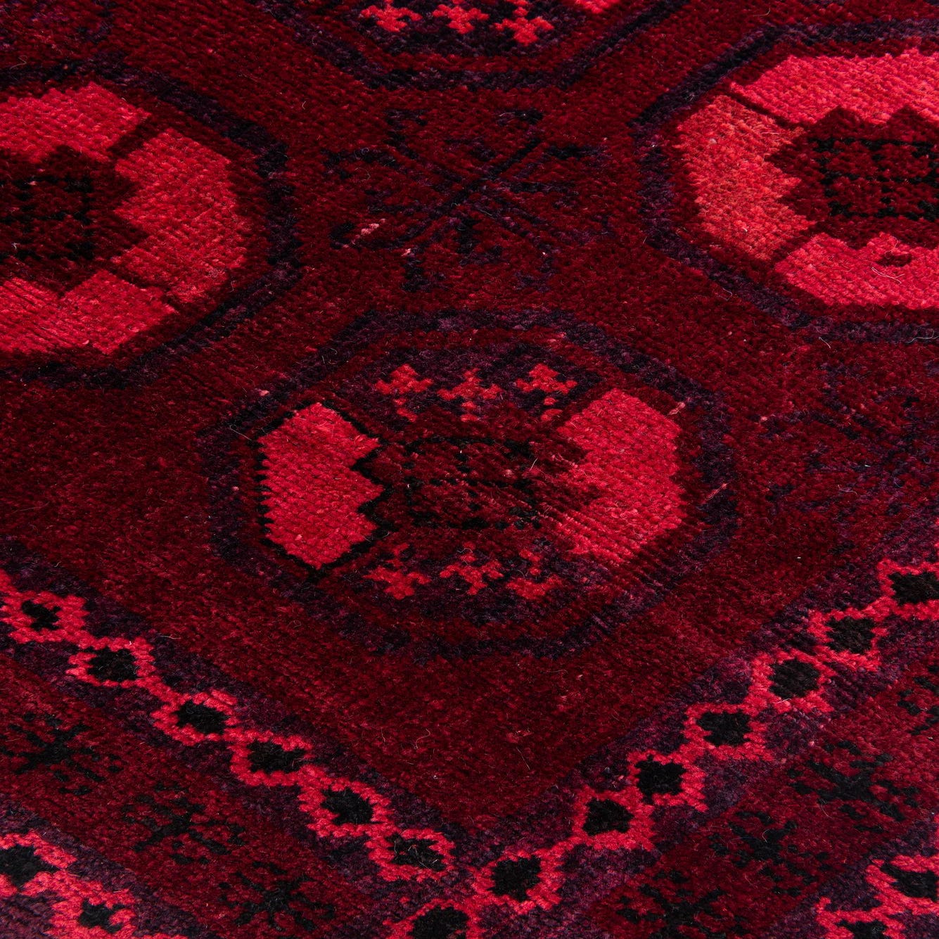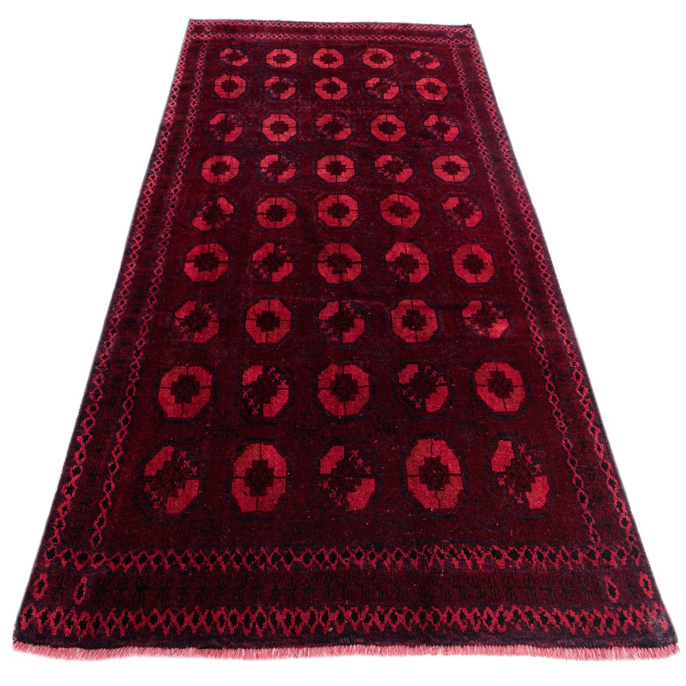 A 6x9 rectangular Ultra Vintage rug in deep reds, featuring a grid of octagonal medallions with intricate floral patterns, and a decorative border.