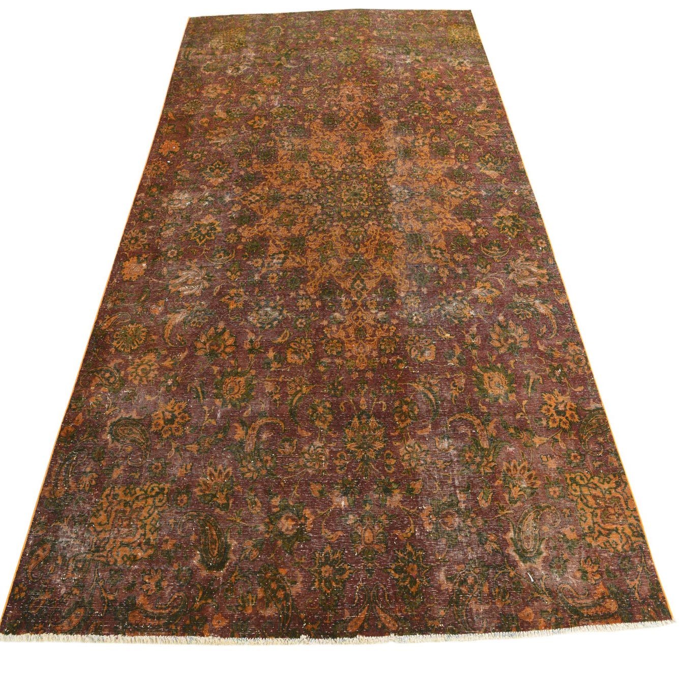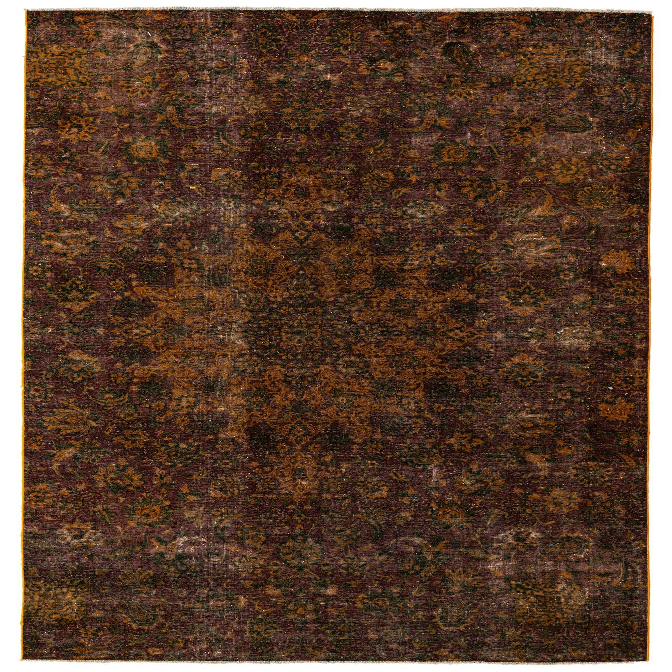 This Persian Ultra Vintage rug is an antique Persian Rug that has been washed, over-dyed, and then shaved down to a low pile. Look at the detail pictures to fully appreciate the uniqueness of this piece.