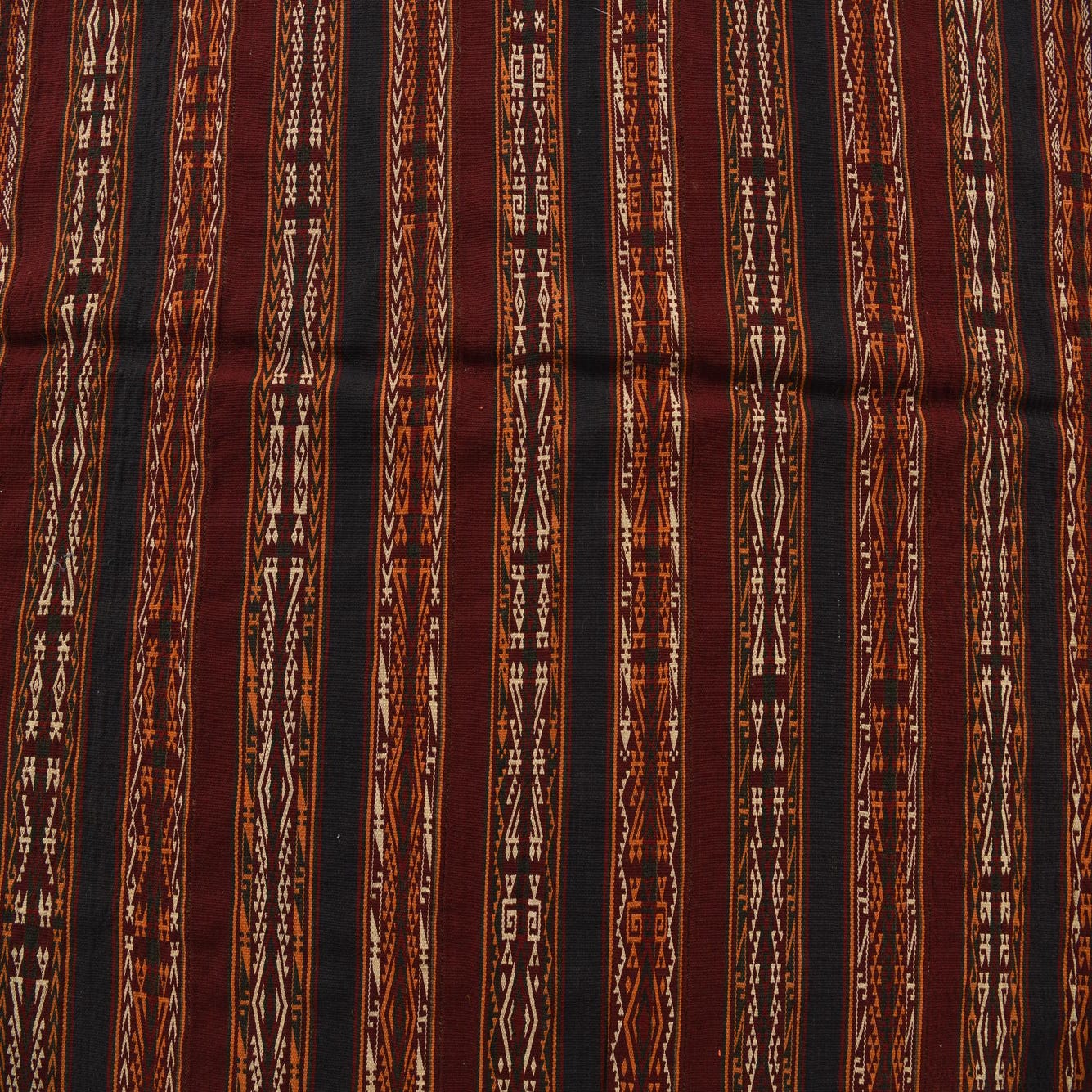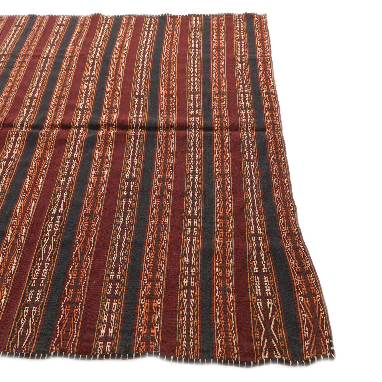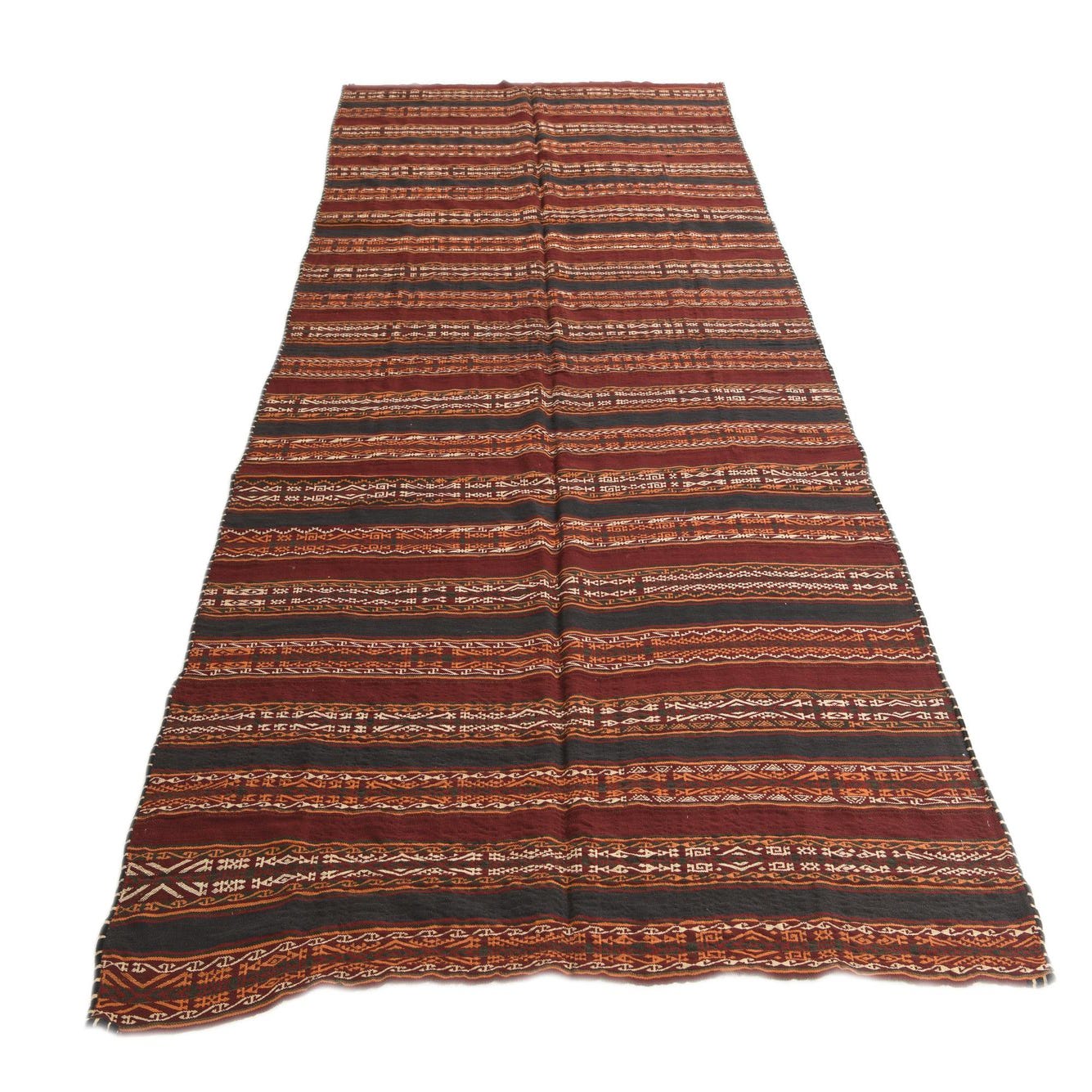 The texture is indicative of its hand-woven construction, offering a flatweave that feels authentic and durable underfoot. As a semi-antique piece with a heritage spanning 40 to 60 years, it carries a time-honored aesthetic that can add depth to a range of interior spaces.