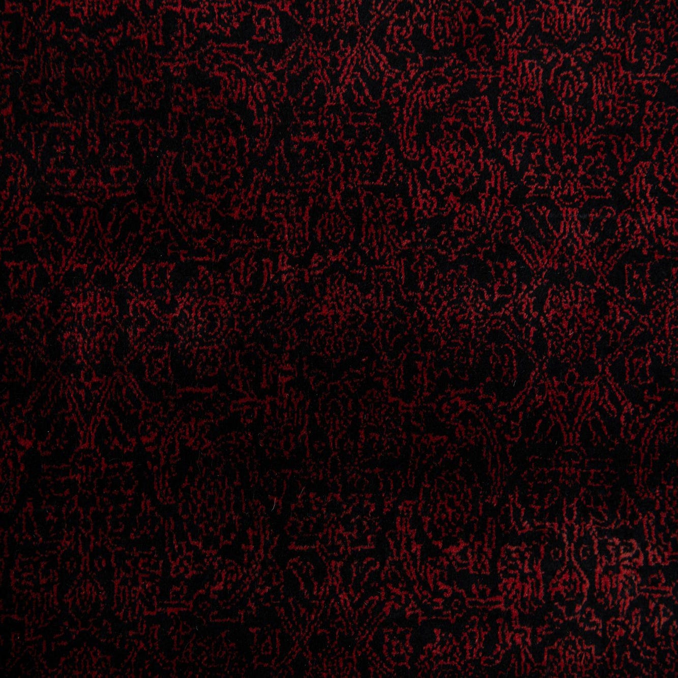 Primary color is Burgundy. Colors in this rug include: Burgundy, Green, Ivory, Peach, Navy Blue.