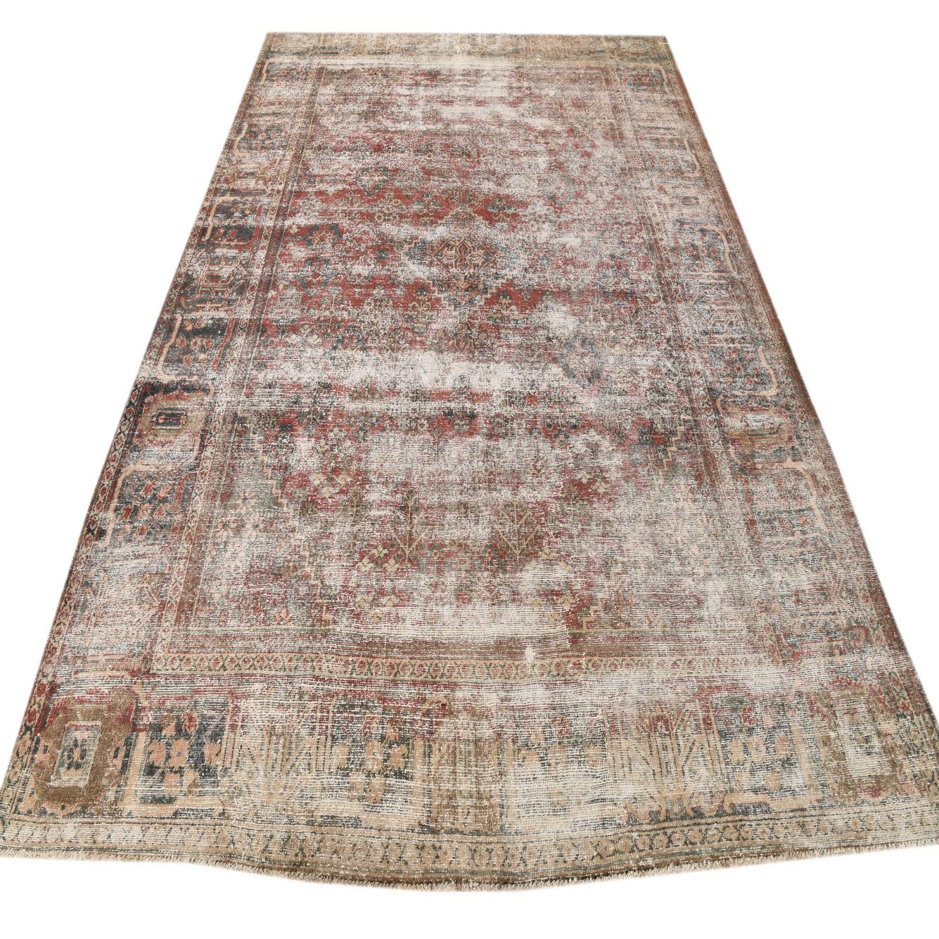 This Persian Ultra Vintage rug is an antique Persian Rug that has been washed, over-dyed, and then shaved down to a low pile. Look at the detail pictures to fully appreciate the uniqueness of this piece.