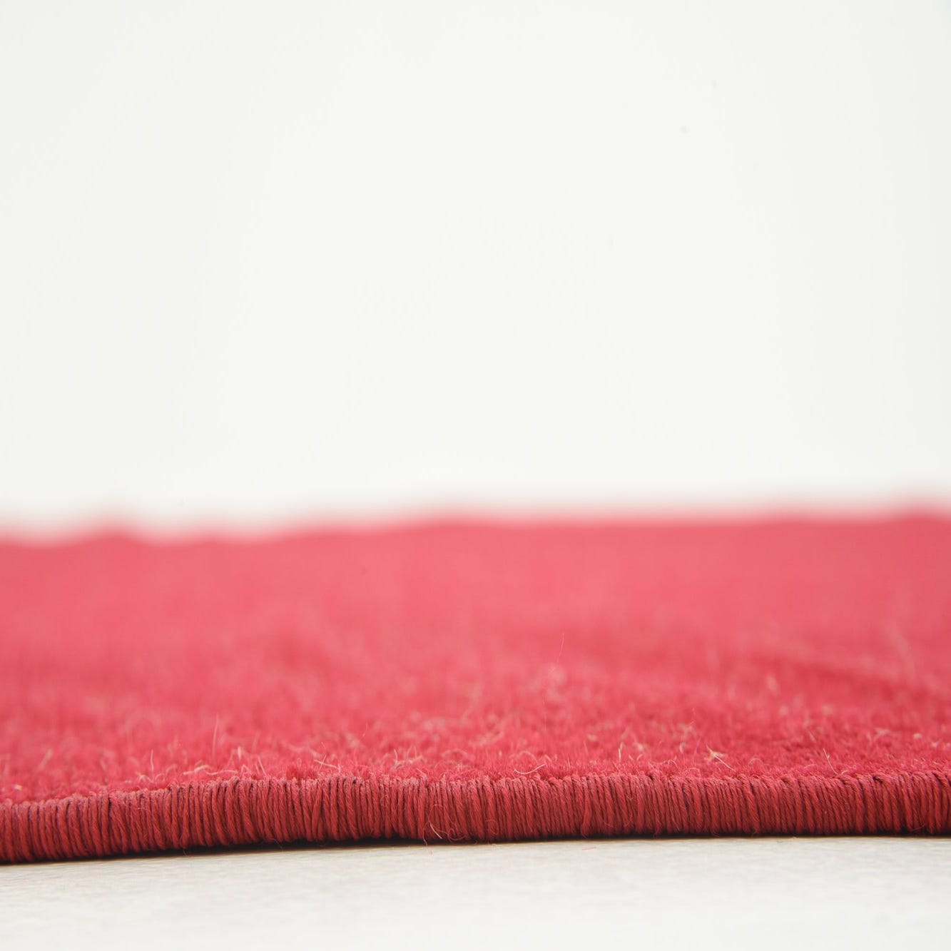 Place the rug beneath a round dining table to ground the seating area or center it in a living room to define a conversation cluster. It pairs naturally with warm wood furniture, matte black metal accents, and neutral upholstery, and works well in mid-century modern, industrial loft, or updated traditional interiors that benefit from a bold, unified color anchor. Layer it with textured throws and cushions for added tactile contrast.