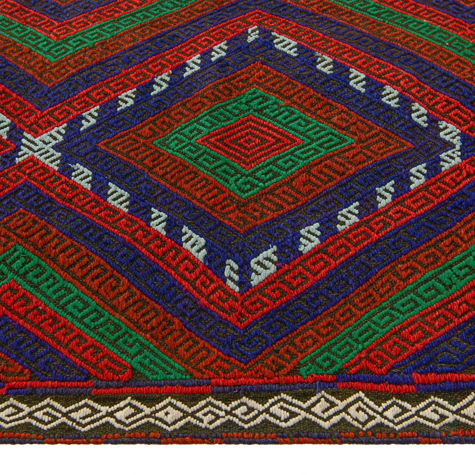 This piece works well as a hallway or entry runner to introduce color and direction, and it pairs nicely with warm wood floors, leather seating, and brass or matte black accents. Layer it in a bohemian living room over a larger neutral rug, position it along the side of a bed for added warmth, or use it in a study or dining approach to bring a grounded, tribal-inspired geometry to contemporary and rustic interiors alike.