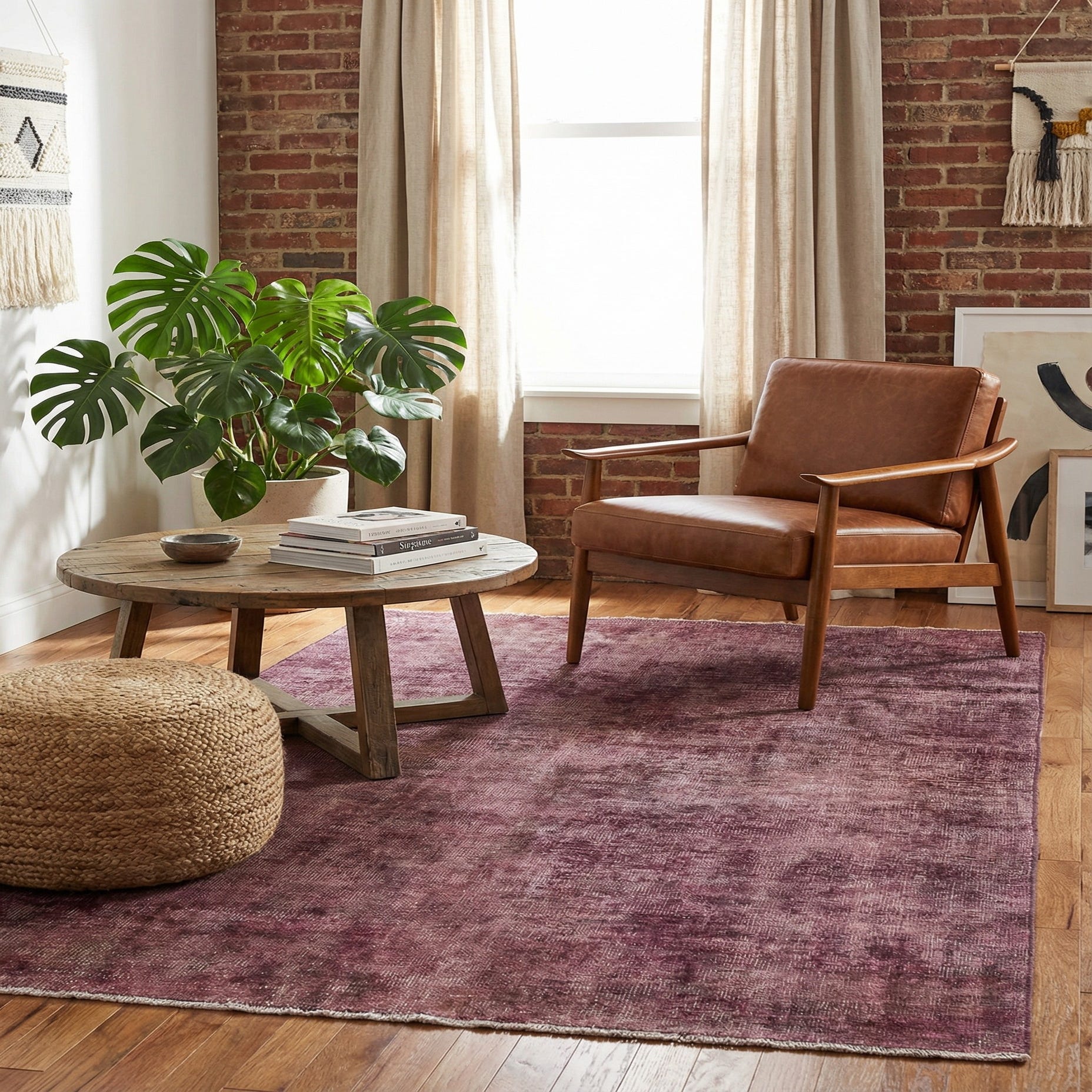 Primary color is Burgundy. Colors in this rug include: Burgundy, Beige, Black.