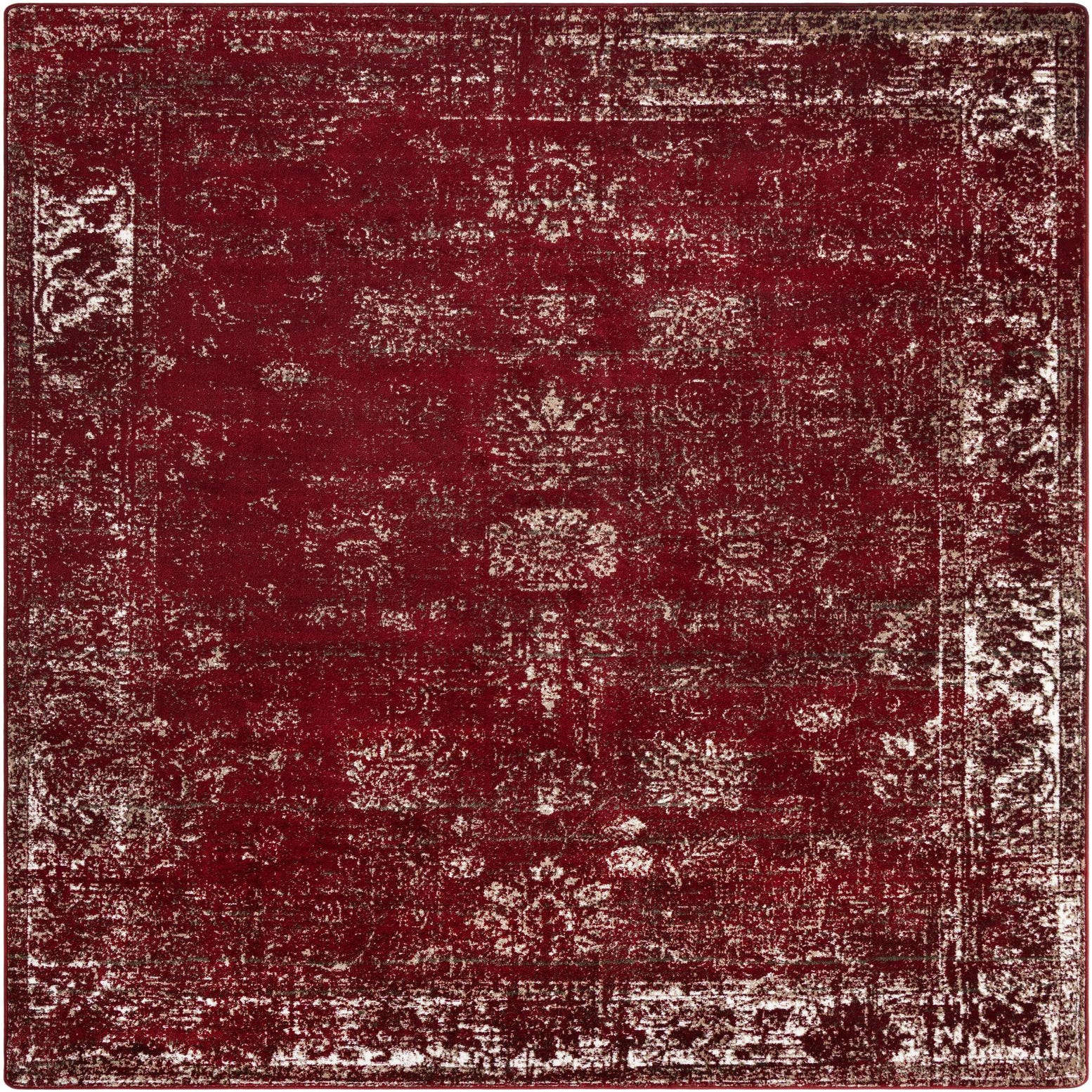 Primary color is Burgundy. Colors in this rug include: Burgundy, Gray, Ivory.