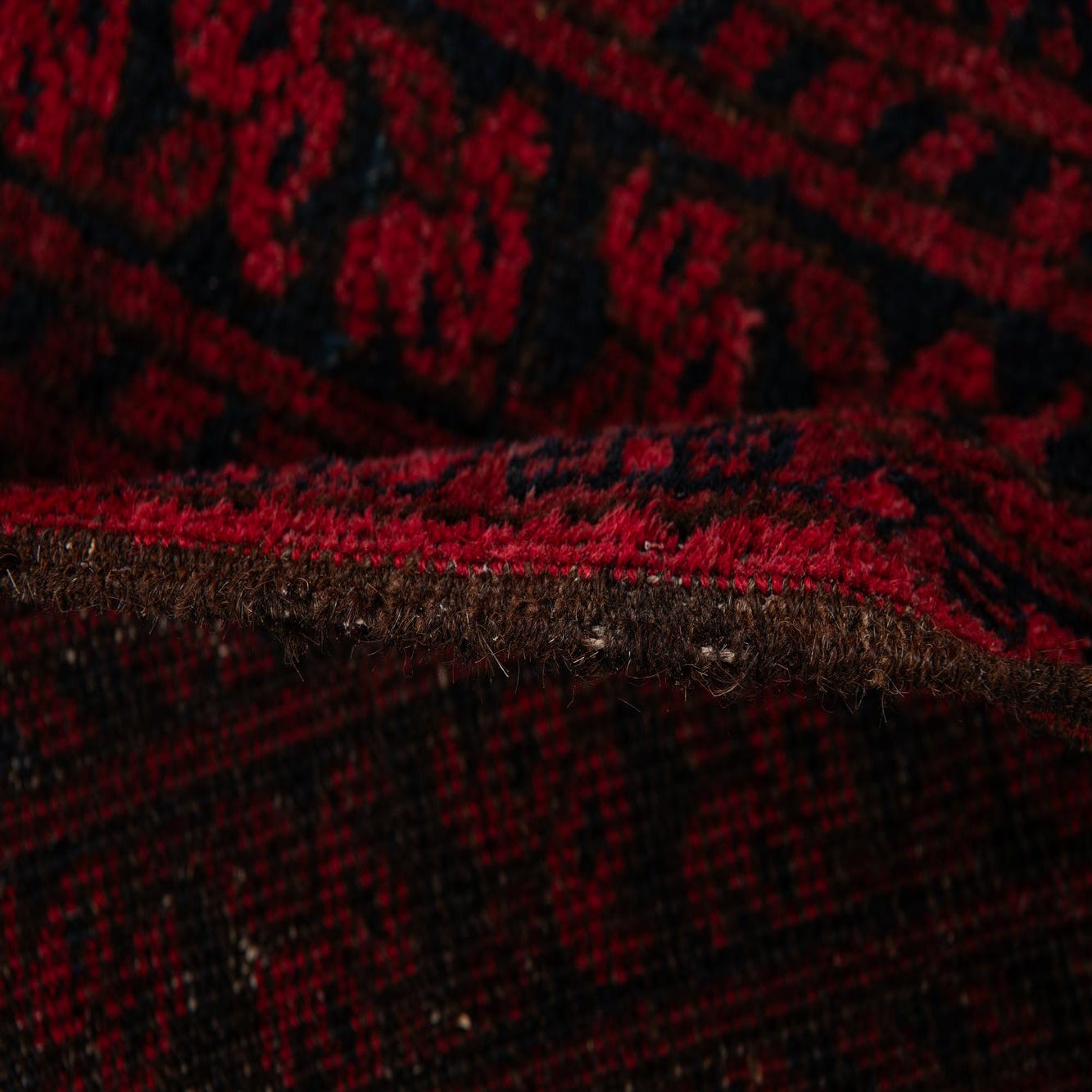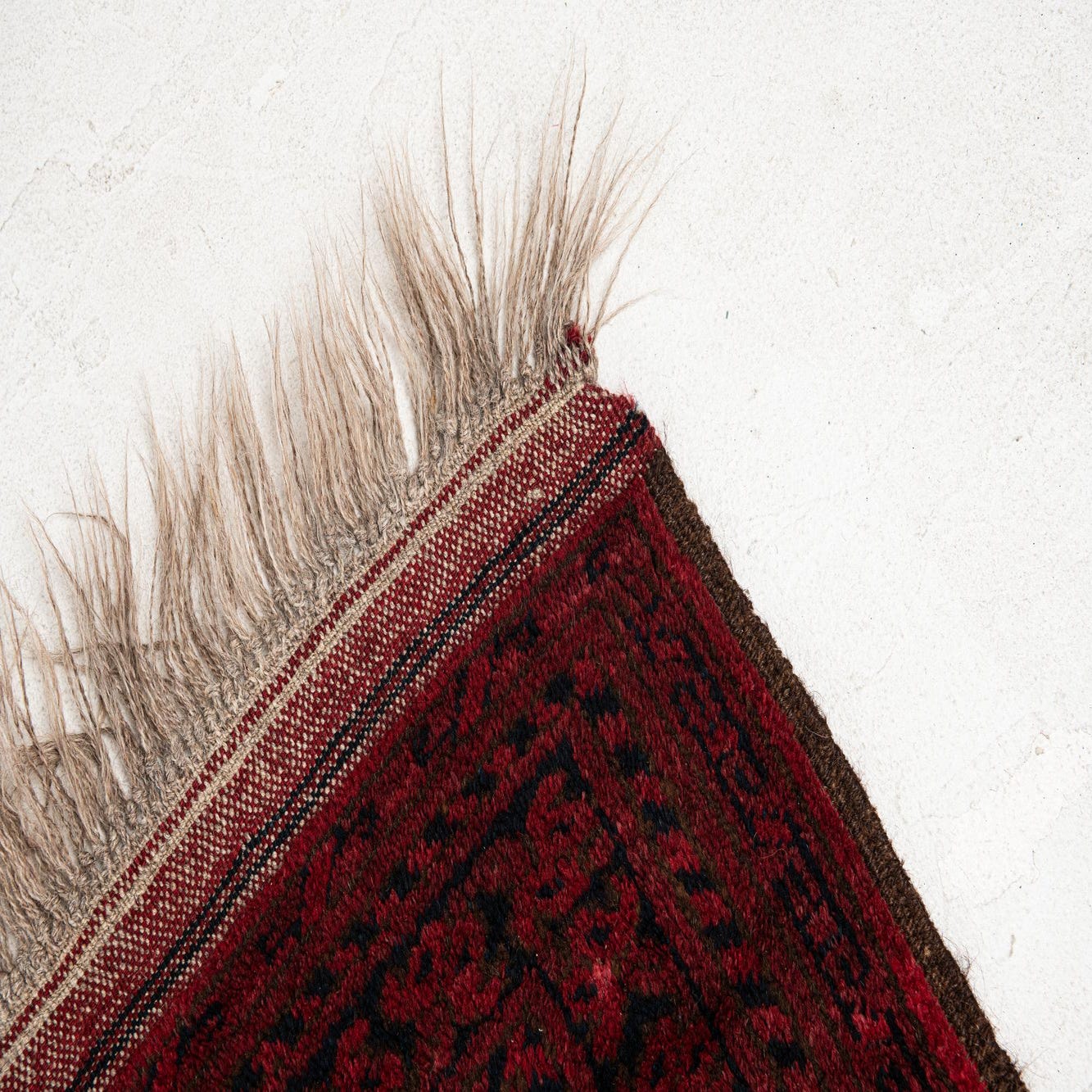Primary color is Burgundy. Colors in this rug include: Burgundy, Black.