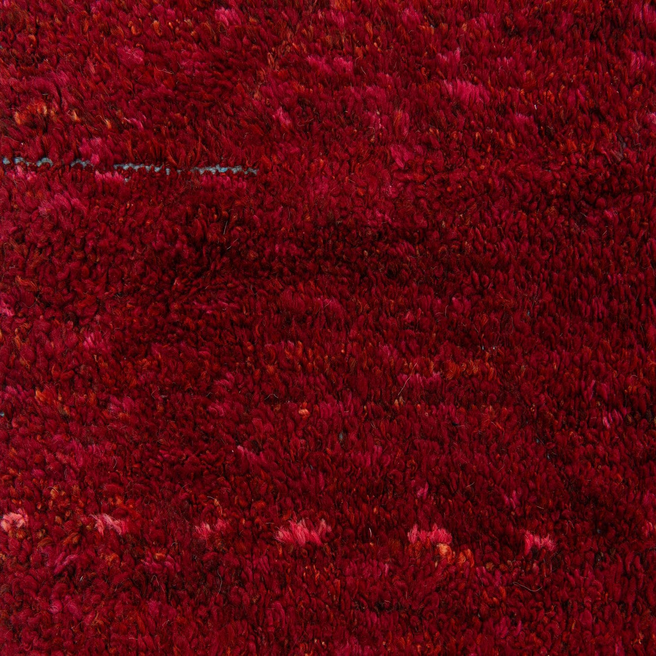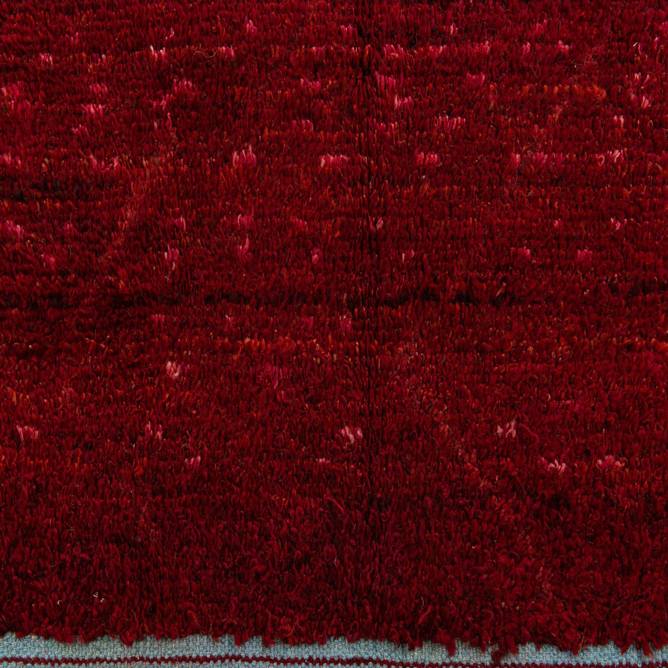 A deep burgundy field anchors this hand-knotted, 100% wool rug, its surface alive with subtle tonal variations and fine black speckling that create visual depth without a defined motif. Close inspection reveals faint horizontal striations and slight irregularities in the pile—characteristics of hand-knotted construction—that give the piece a lived-in, tactile quality. The wool pile feels dense and warm underfoot, with a soft, natural texture that invites bare feet and quiet conversation.