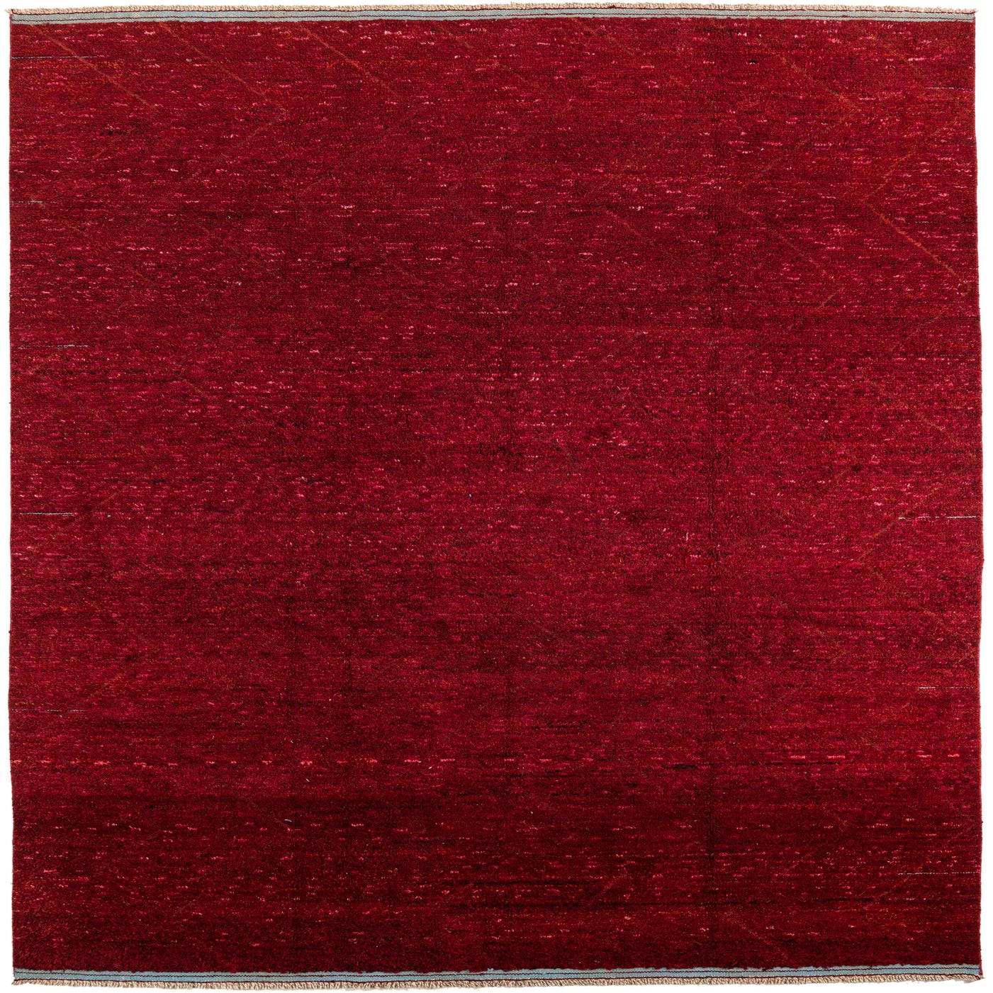 A 9x12 rectangular red shag rug with subtle tribal patterns, suitable for a living room or bedroom.