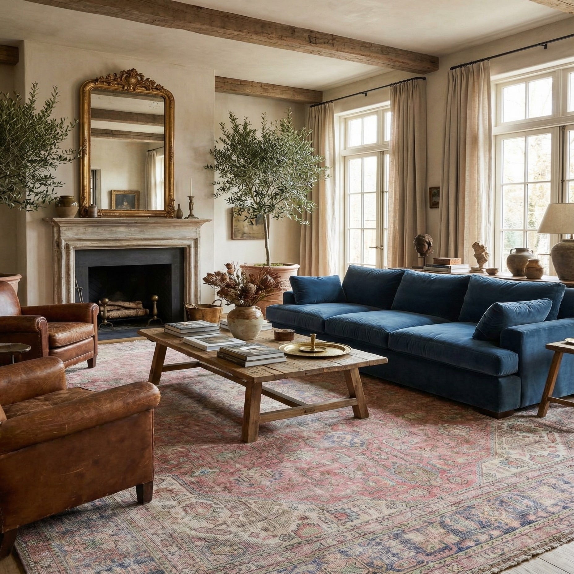 This rug is well-suited for a variety of interior spaces that aim to project elegance and a sense of history. It would complement traditional settings, offices, or libraries that feature rich wooden furnishings and tastefully curated antique pieces. Additionally, it could serve as a striking contrast in a more contemporary space, providing warmth and a layered look ideal for living rooms or dining areas seeking a focal point with character.