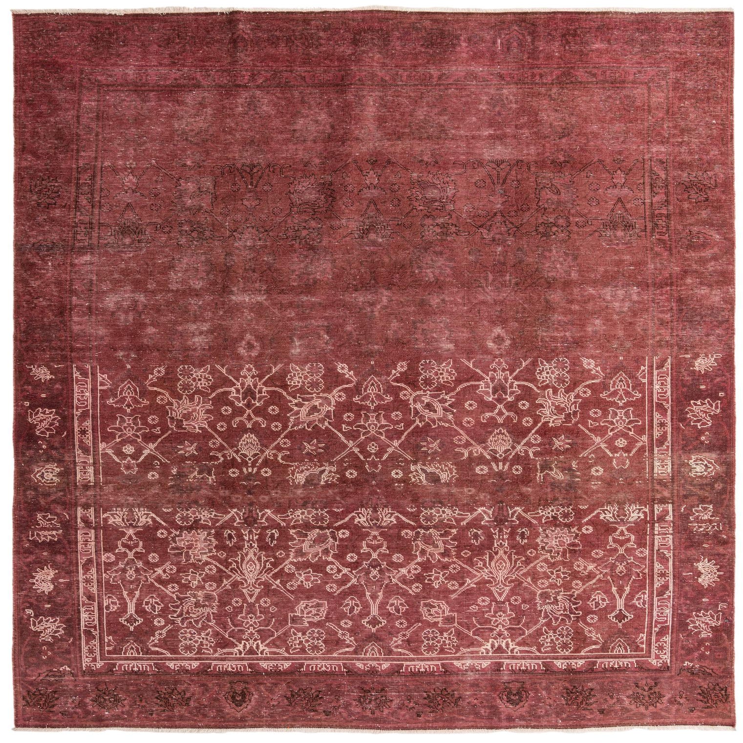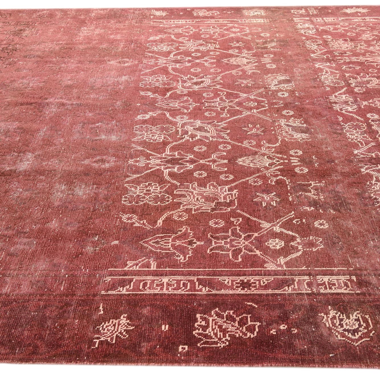 A 9x12 rectangular Ultra Vintage red wool rug with a faded Persian-inspired floral and abstract pattern.