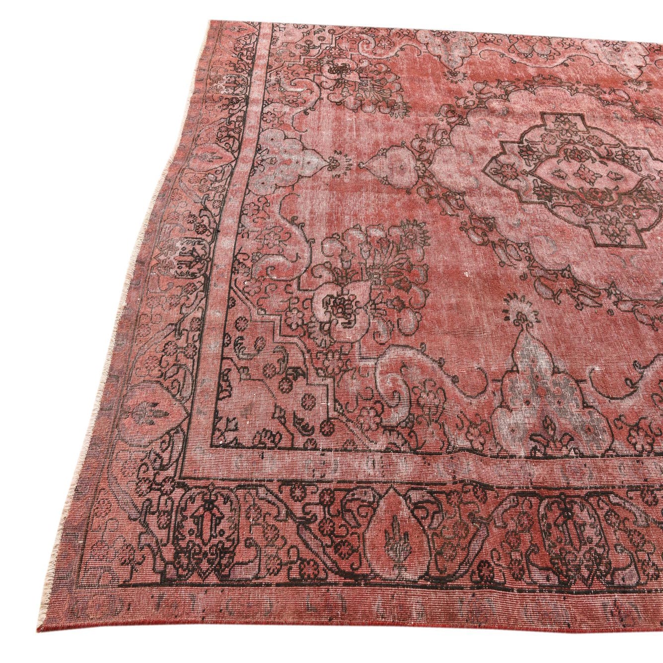 This Persian Ultra Vintage rug is an antique Persian Rug that has been washed, over-dyed, and then shaved down to a low pile. Look at the detail pictures to fully appreciate the uniqueness of this piece.