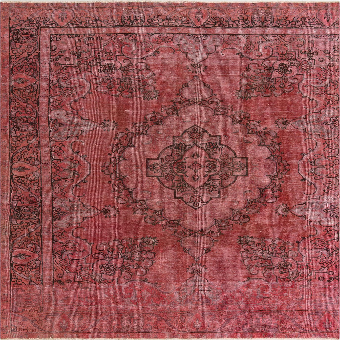 A 9x12 rectangular Ultra Vintage Persian rug in faded red with a dark medallion and intricate floral patterns.