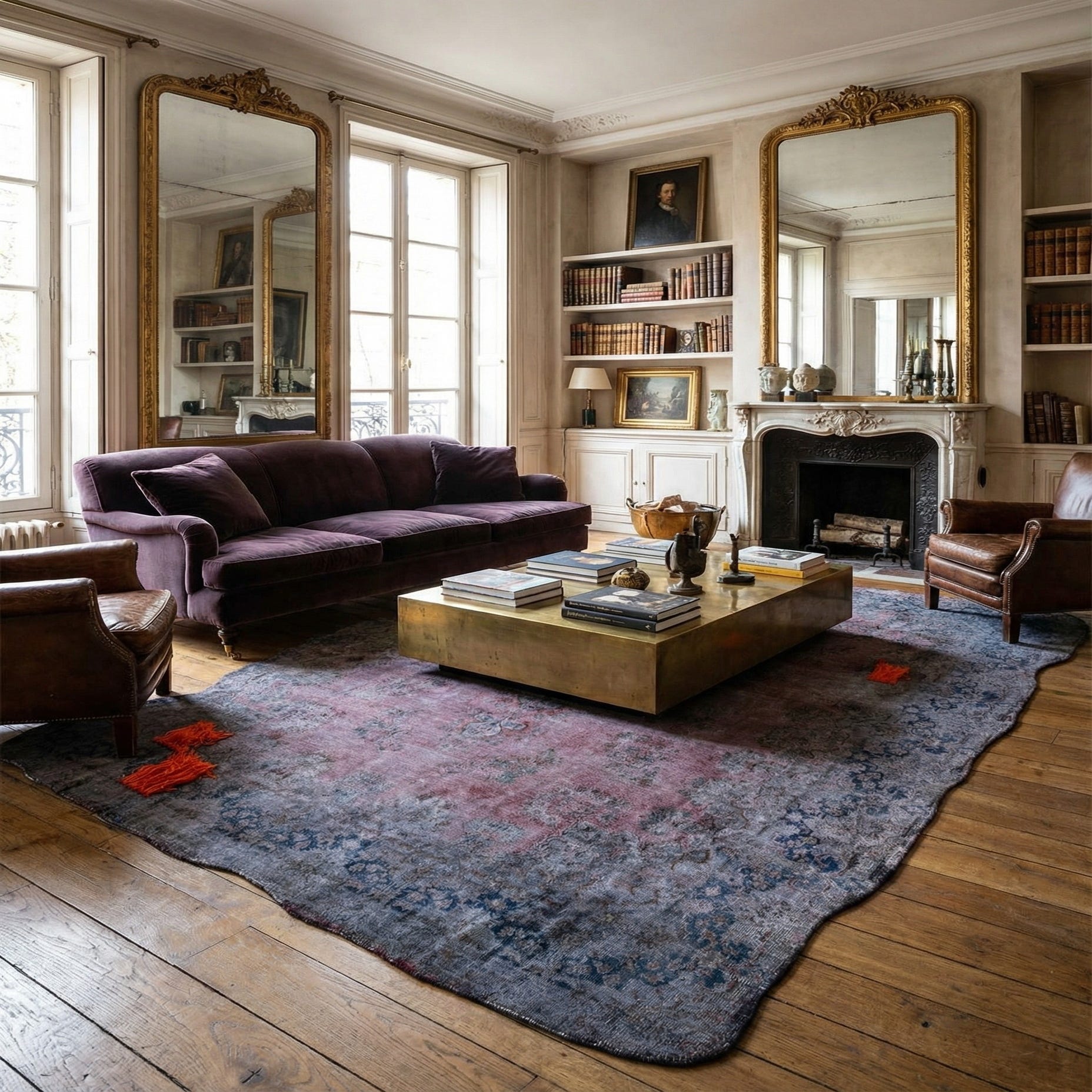 This Persian Ultra Vintage rug is an antique Persian Rug that has been washed, over-dyed, and then shaved down to a low pile. Look at the detail pictures to fully appreciate the uniqueness of this piece.