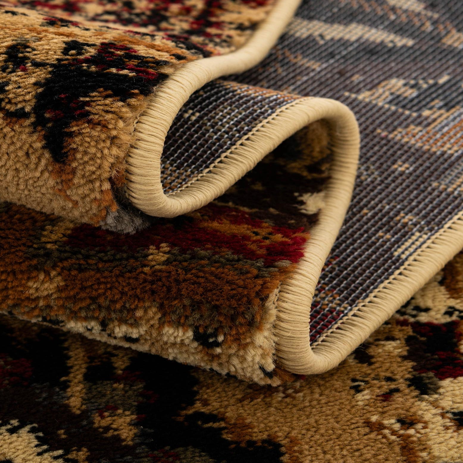 Primary color is Burgundy Beige. Colors in this rug include: Burgundy Beige, Black, Light Brown, Gray.