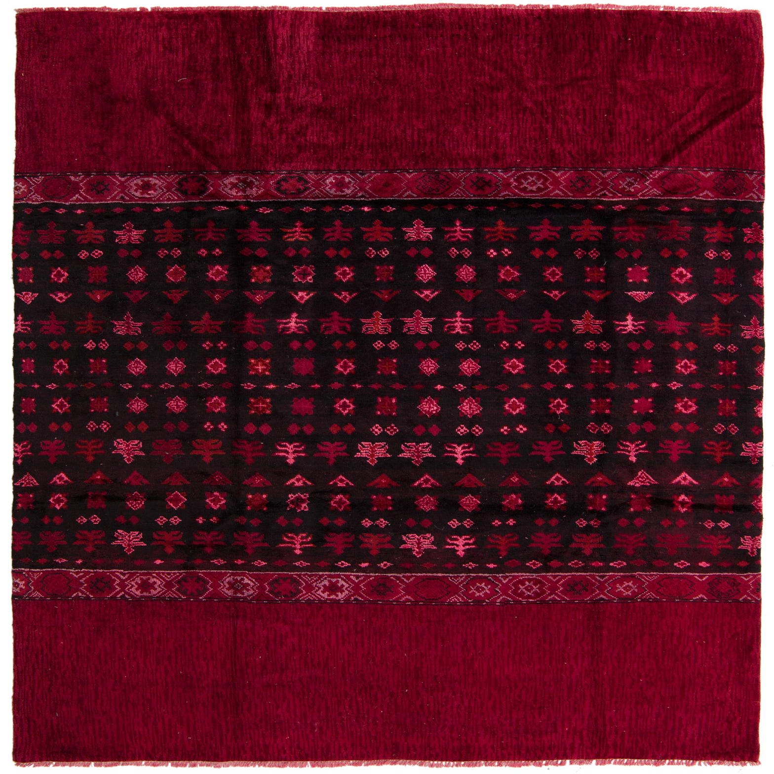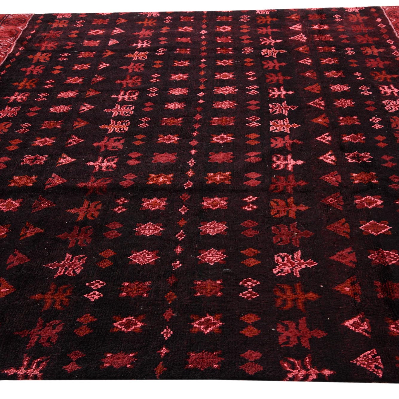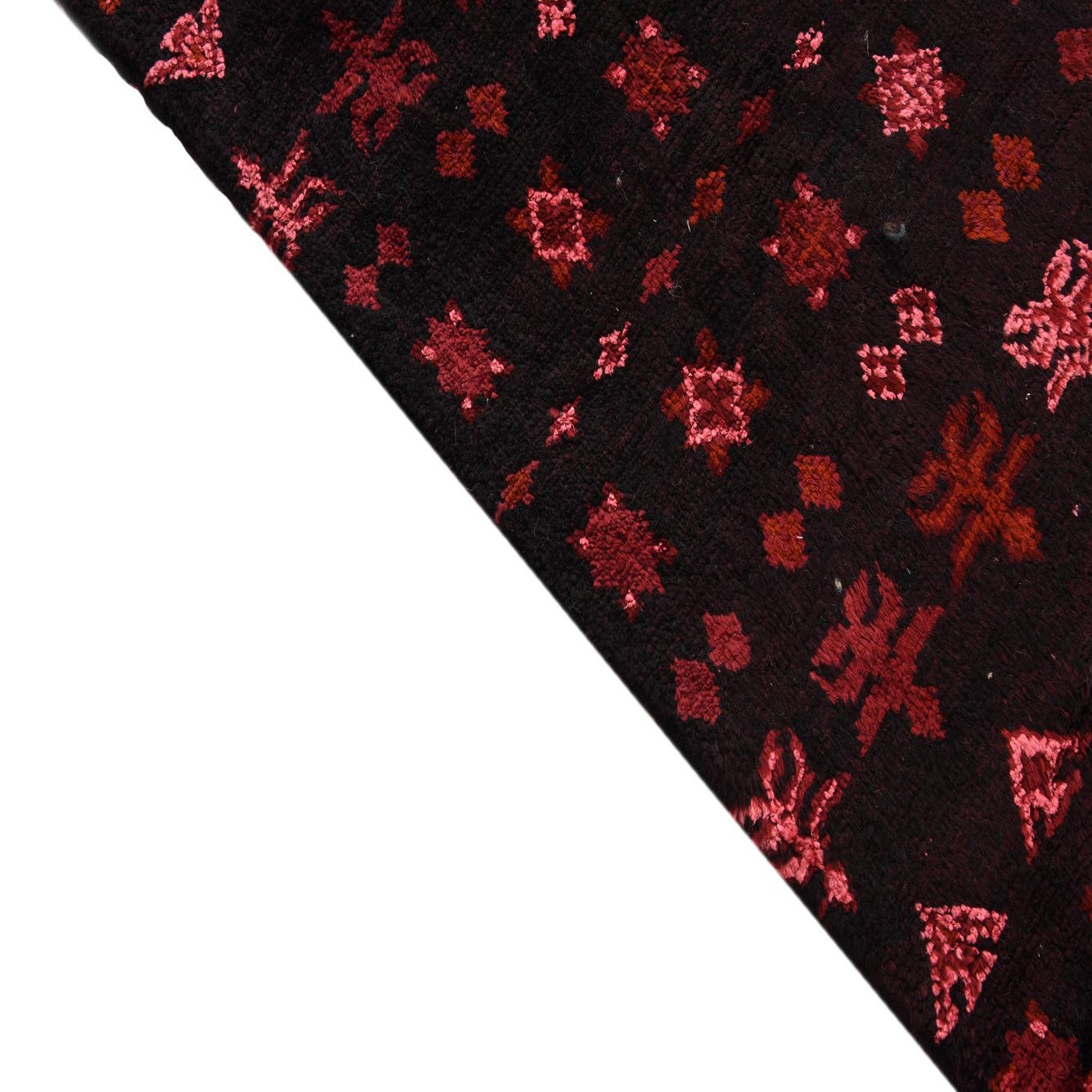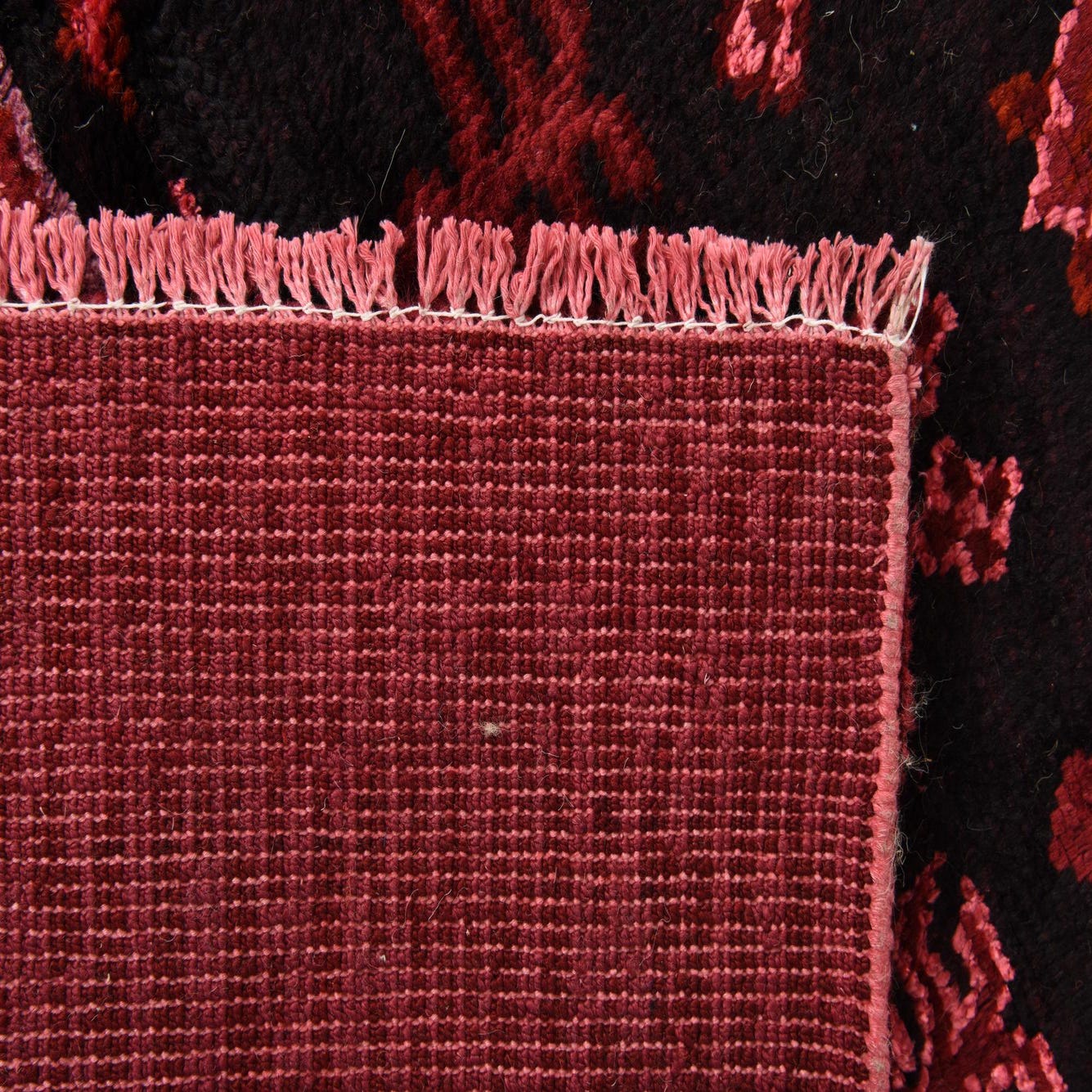 Primary color is Burgundy Black. Colors in this rug include: Burgundy Black, Pink, Maroon.
