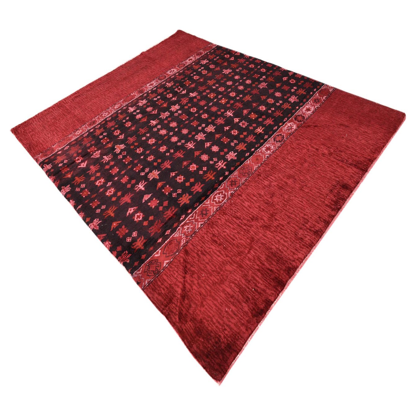 An 8x10 rectangular Darya rug in burgundy and black, featuring a modern oriental abstract pattern with textured pile.