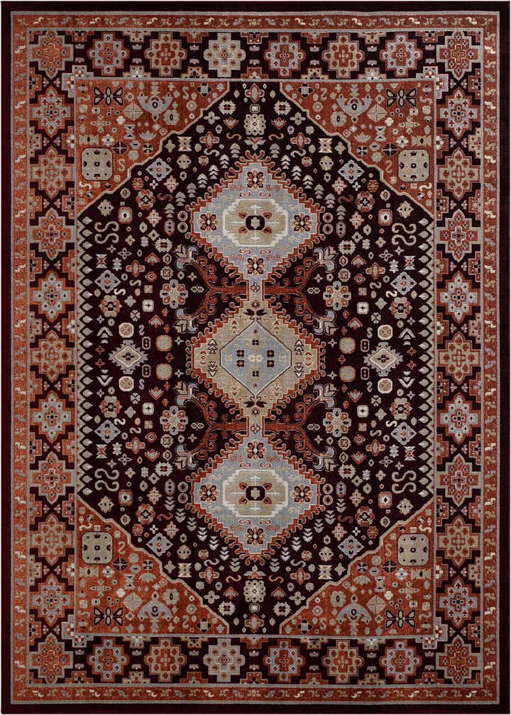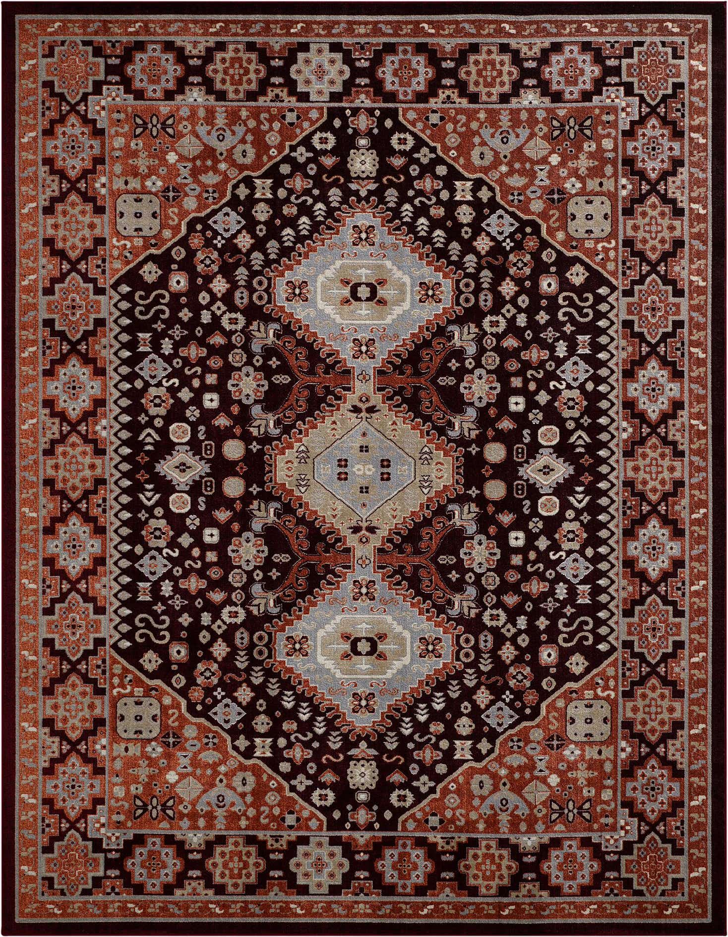 Primary color is Burgundy Red. Colors in this rug include: Burgundy Red, Gray, Ivory, Terracotta.