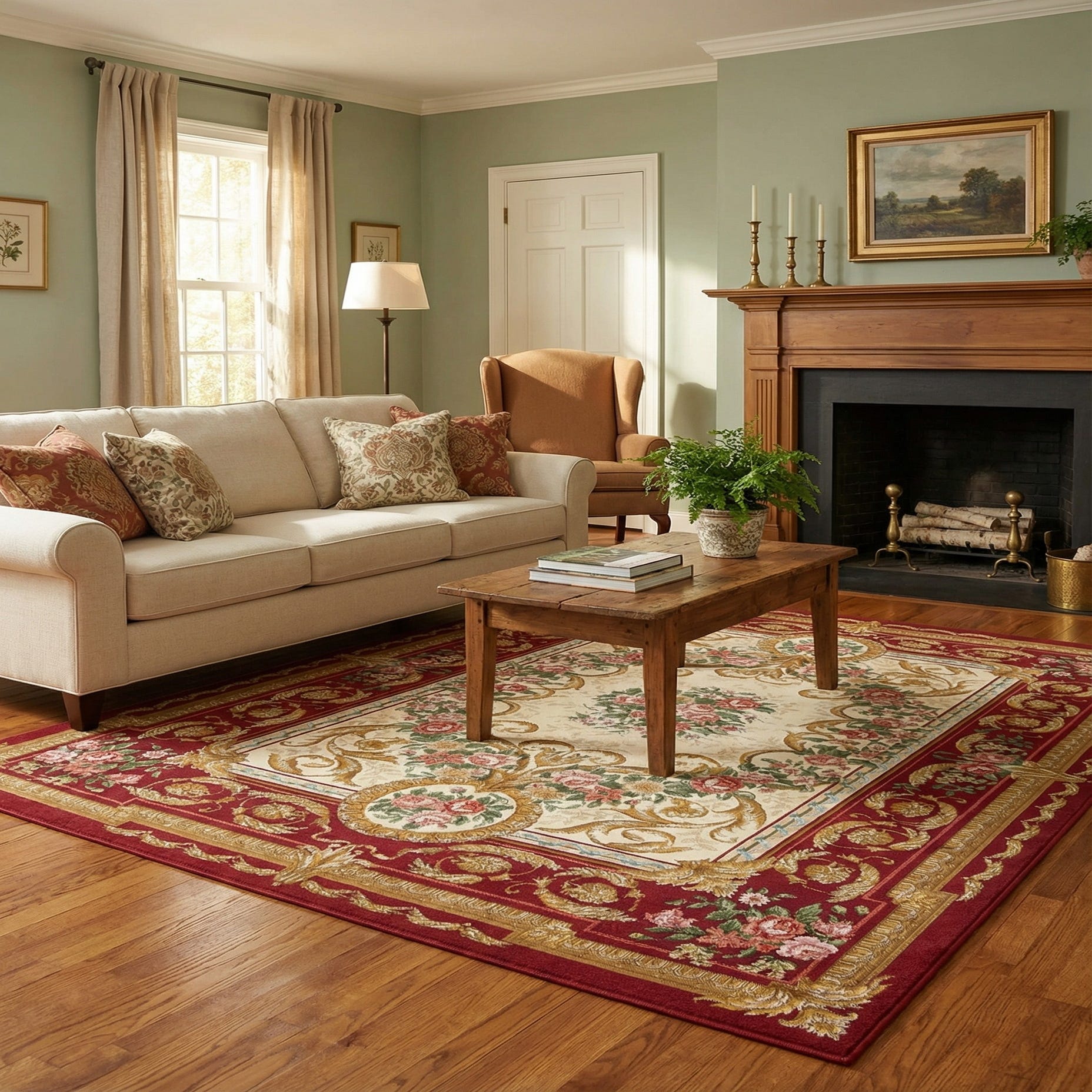 Machine made from 100% polypropylene, the rug has a low-profile, tightly woven face that feels slightly textured underfoot and holds the pattern with crisp clarity. It works well under a formal dining table or as the focal point of a living room with dark wood furnishings and brass or gold accents, and it also suits covered outdoor living spaces or a sunroom where traditional style meets practical performance. Pair it with neutral upholstery to let the pattern shine, or layer with warm wood tones and antique-inspired accessories for a cohesive, classic interior.