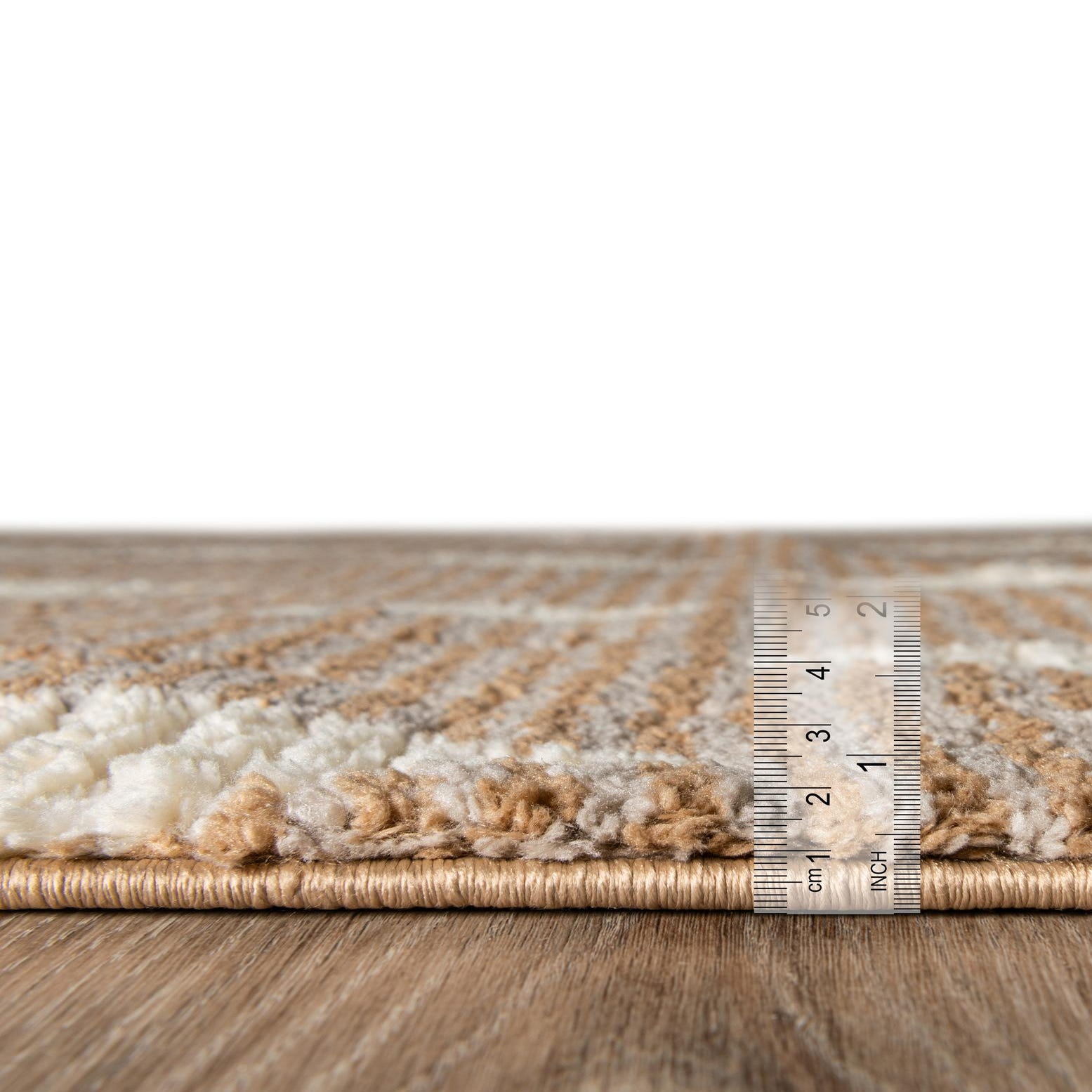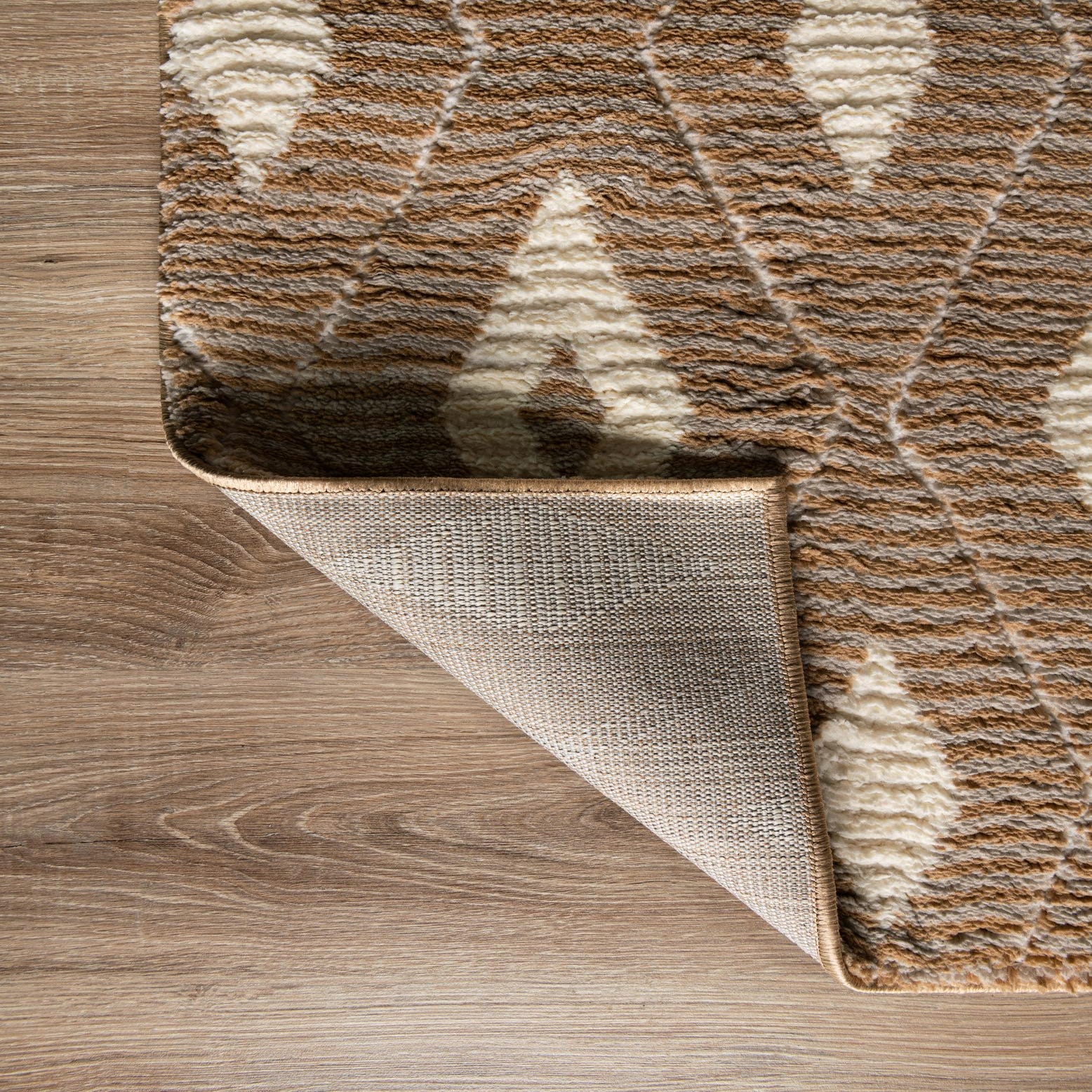 A 6 ft runner rug featuring a modern abstract pattern of ivory diamonds on a textured tan and brown background, ideal for a hallway.