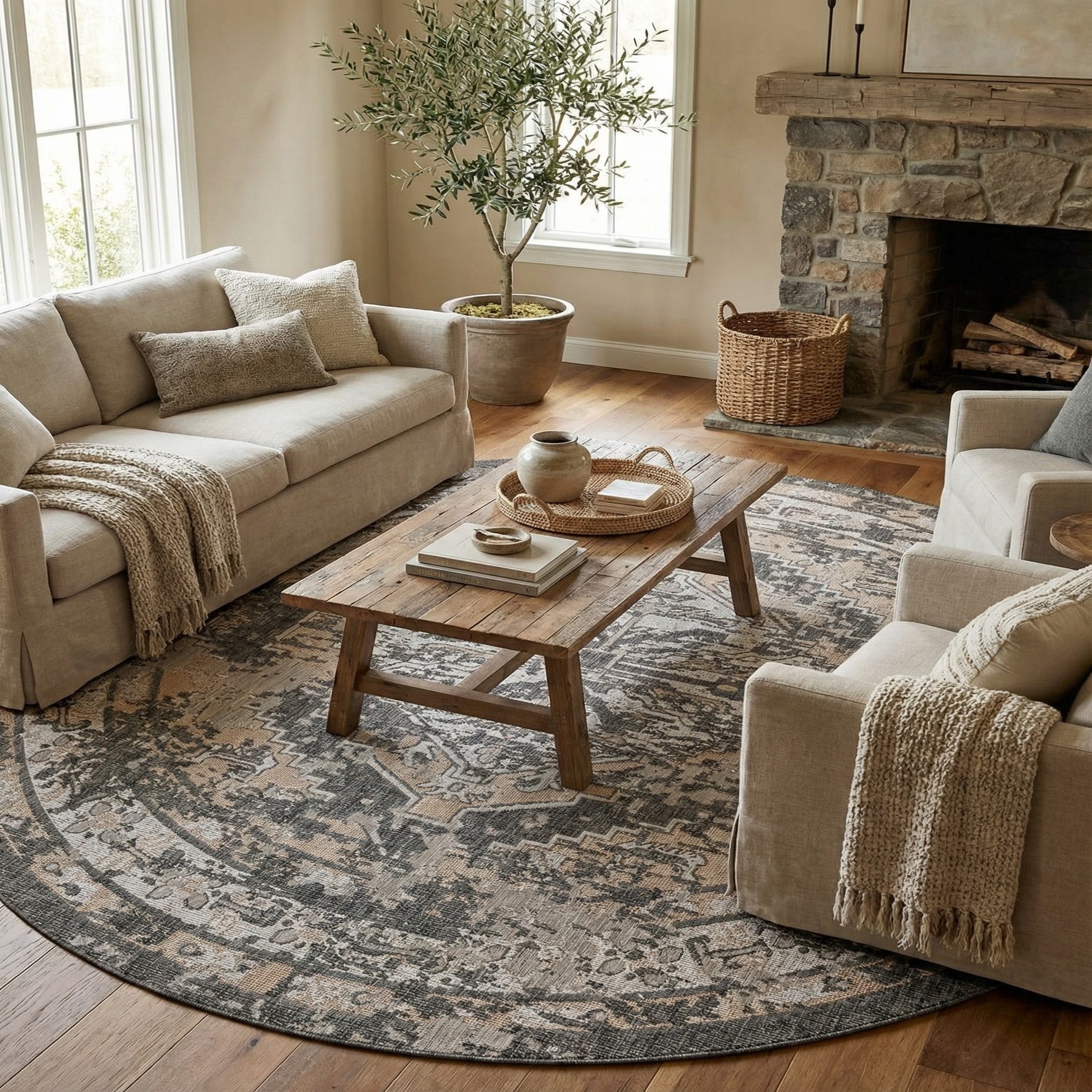 10' x 10' Washable Traditional Indoor / Outdoor Round Rug