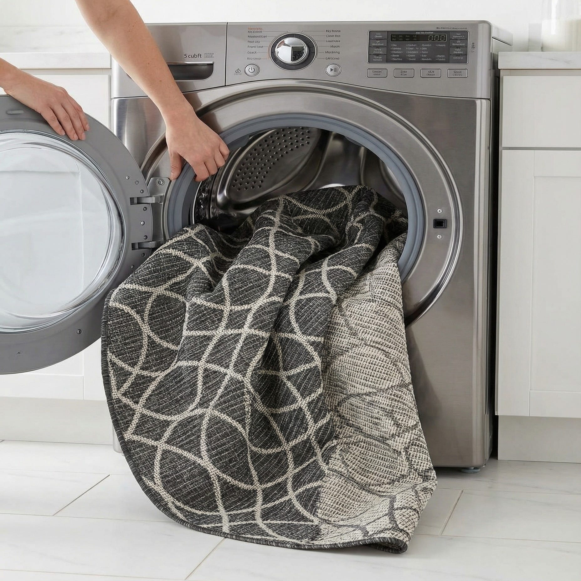 The round shape and durable construction make this rug well-suited for covered outdoor seating areas, a casual breakfast nook, or a compact patio where a defined gathering spot is needed. Pair it with warm wood and rattan pieces for a relaxed, layered look, black metal or concrete accents for an industrial edge, or crisp white cushions and planters to brighten the palette for coastal-inspired outdoor living.